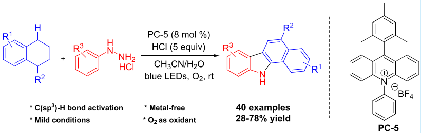 3.Jiaxuan Shen,* Nannan Li, Yanjiang Yu, and Chunhua Ma*Visible-Light-Induced Oxidation/[3 + 2] Cycloaddition/Oxidative Aromatization to Construct Benzo[a]carbazoles from 1,2,3,4-Tetrahydronaphthalene and Arylhydrazine Hydrochlorides.Org. Lett. 2019, 21(17), 7179-7183.(通讯作者,化学一区,Top,IF:6.091)