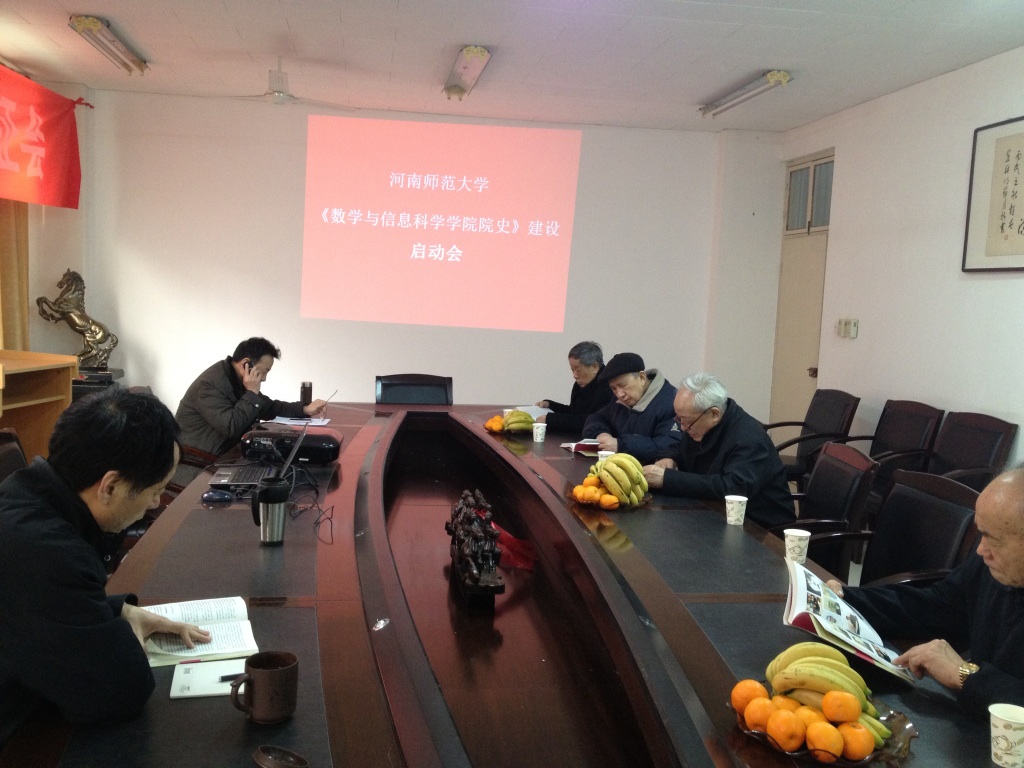2012年3月14日上午,数学与信息科学学院院史建设工作启动会在学院会议室召开。学院特邀原系领导高福洪、王雪生、李少辅、钟计春、李俊德参加。