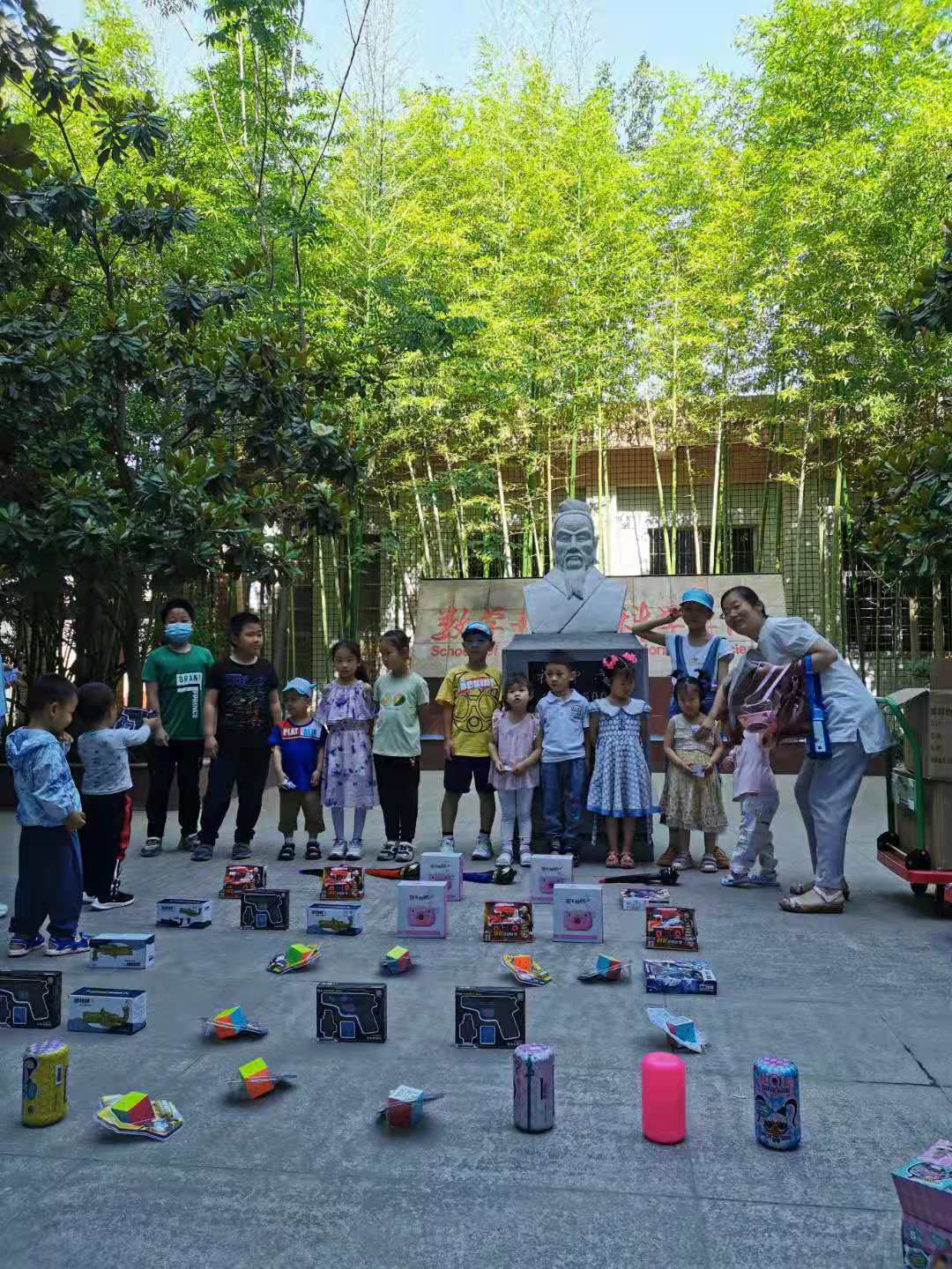 为庆祝六一国际儿童节的到来,数学与信息科学学院5月29日在院内祖冲之像前举办了“童心向党, 欢乐庆六一”趣味活动。