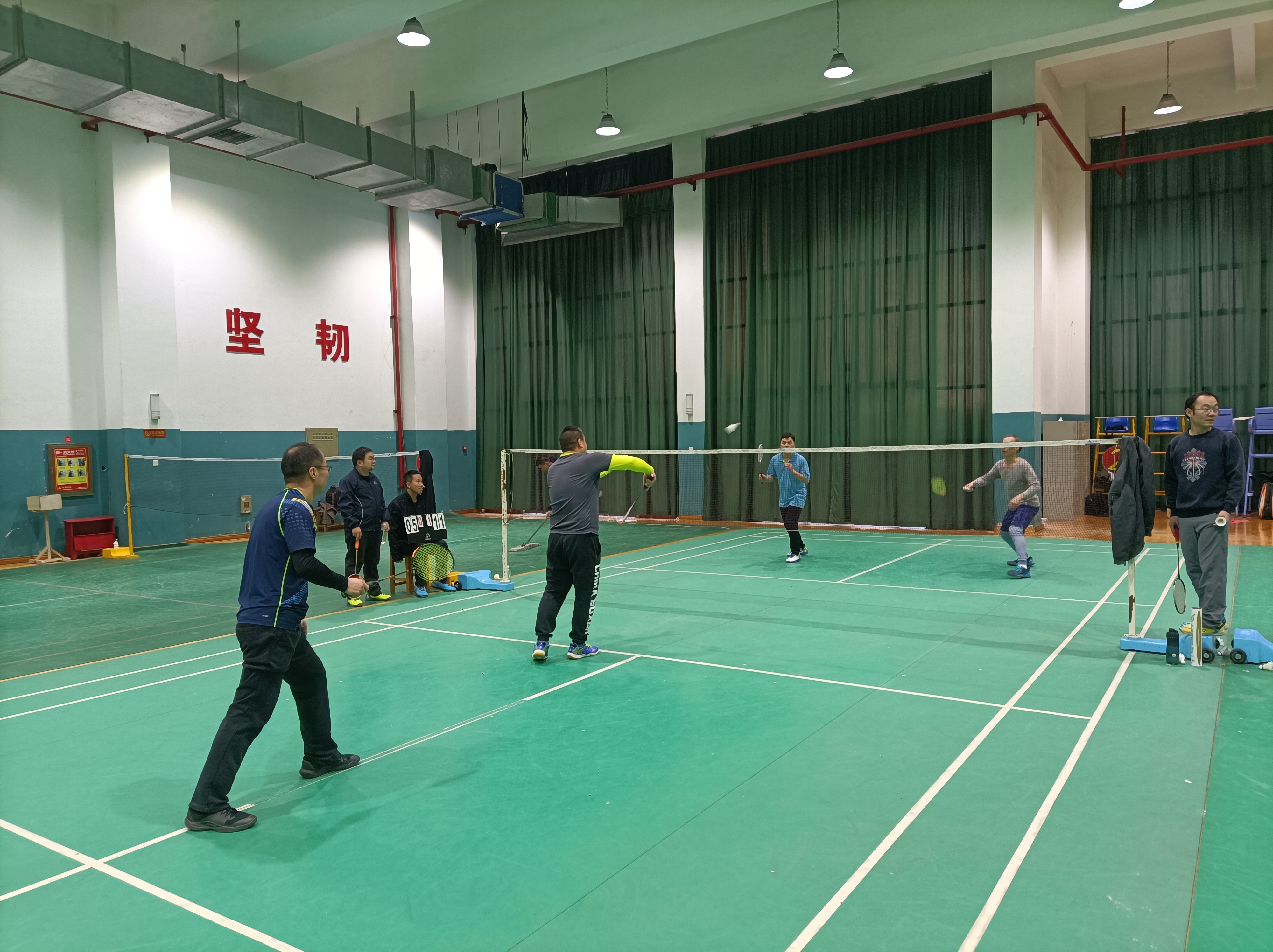本次比赛秉持“友谊第一,比赛第二”的原则,各进行五场比赛,男单、男双、女双各一场,混双两场,每场比赛采取三局两胜的规则。赛前,教职工们提前进入羽毛球场地开始热身,做好充分准备。赛场上,参赛教职工斗志昂扬、全力以赴,将进攻和防守表现得淋漓尽致,展现出教职工的青春激情。比赛中,田长安老师奋力拼搏、活力四射,他展现的精湛球技和勇于拼搏的运动精神值得每一个人学习。比赛最后增加了联谊挑战赛环节,让教职工们在比赛中尽情地展示自己的运动风采、交流球技、增进友谊。