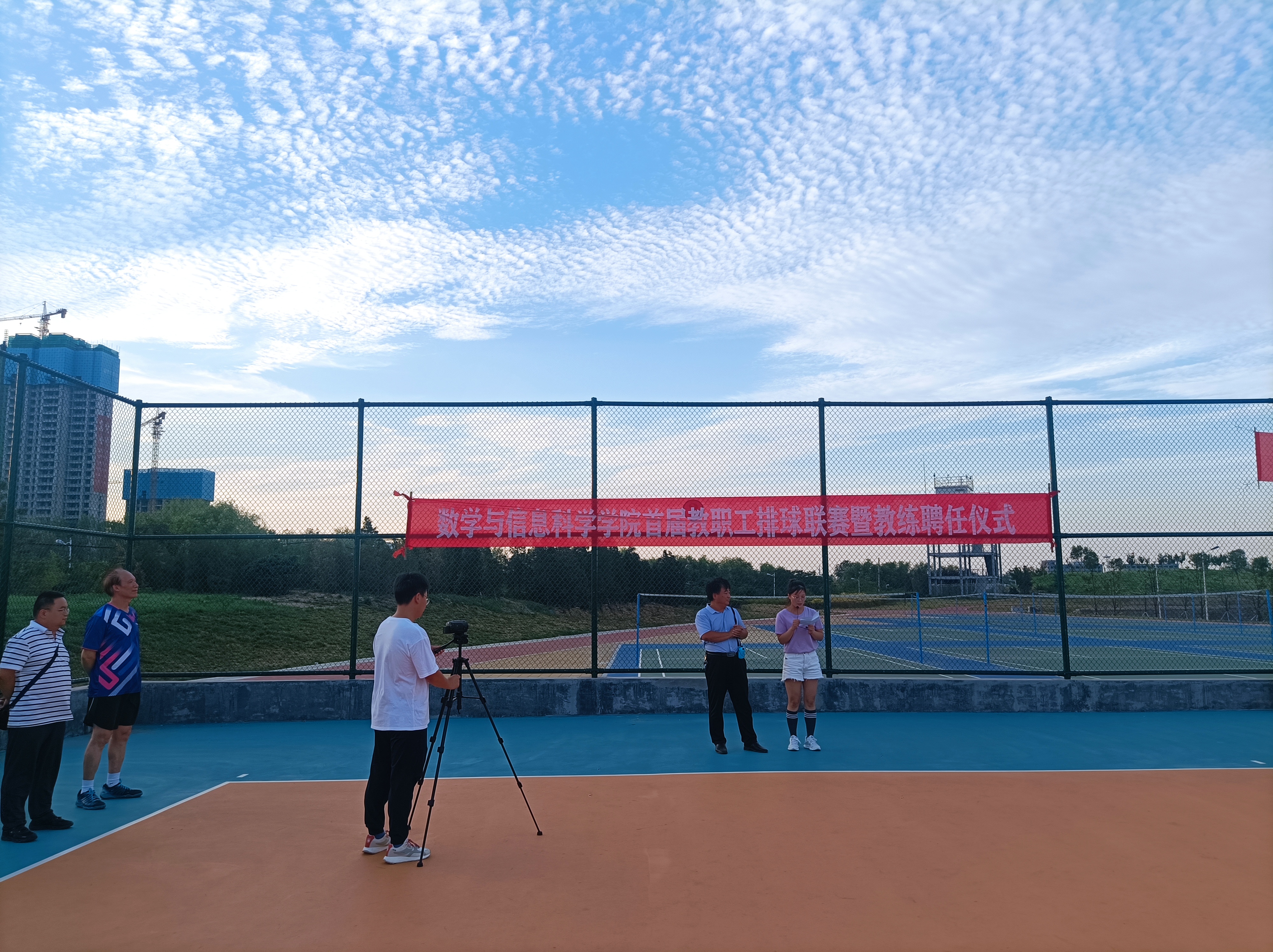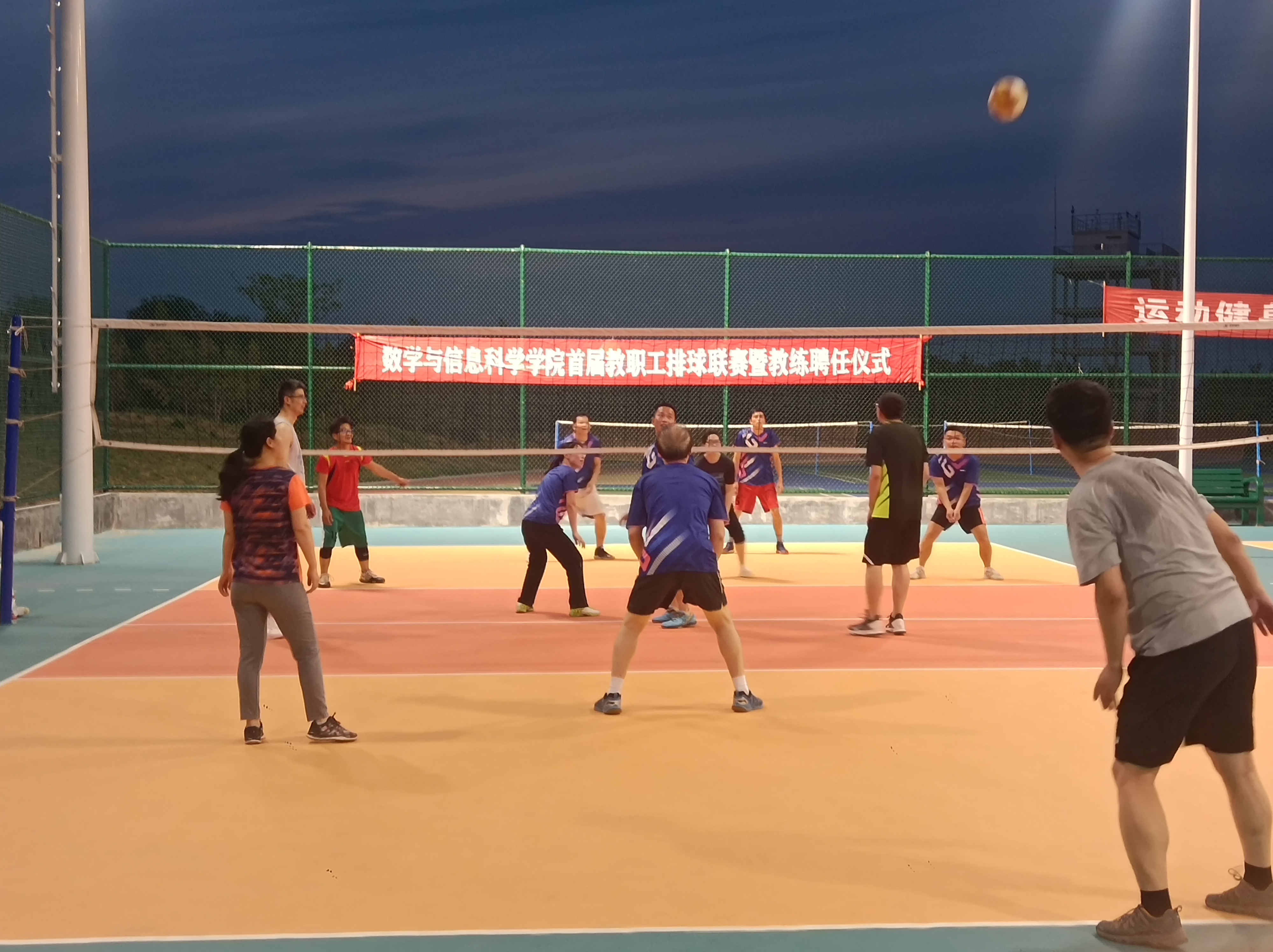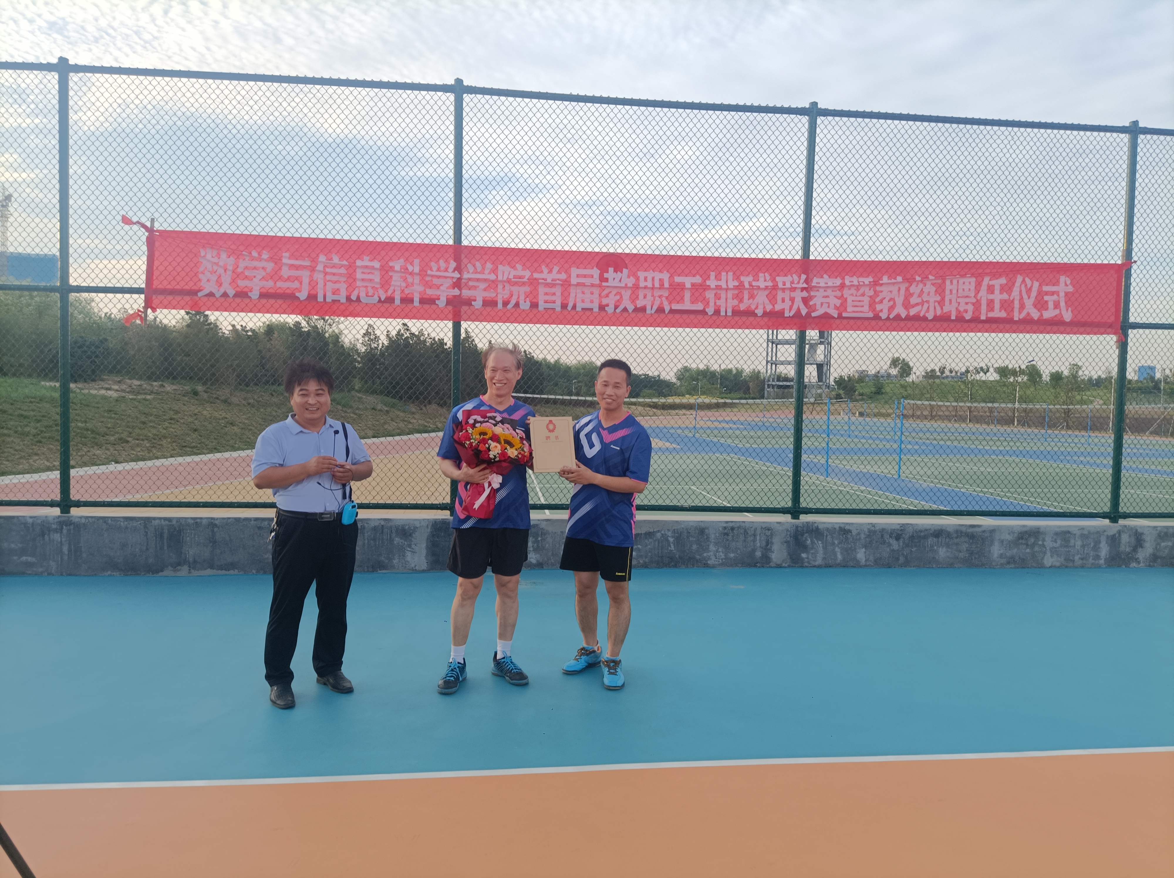 为丰富老师们业余文化体育生活、促进沟通与交流、增进友谊,促使教职工以更加饱满的热情投入到学校、学院各項工作中,6月25日下午6时,数学与信息科学学院在校东区排球场举办数学与信息科学学院首届教职工排球联赛暨教练聘任仪式。学院教职工排球队全体队员参加活动,活动由学院工会主席王凤产主持。