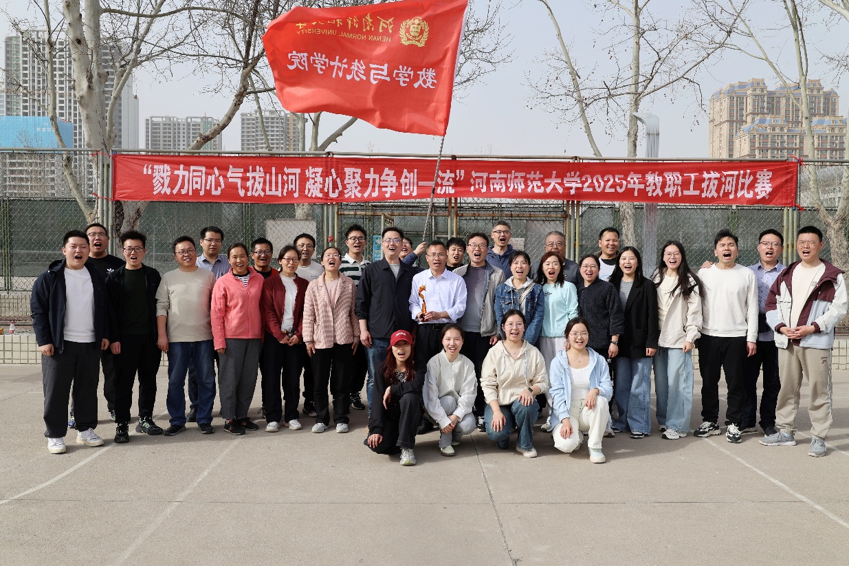 325日下午,我校2025年教职工拔河比赛在西区水泥篮球场圆满落幕。数学与统计学院教职工代表队经过顽强拼搏,荣获季军,追平了学院在该项赛事的历史最佳成绩。