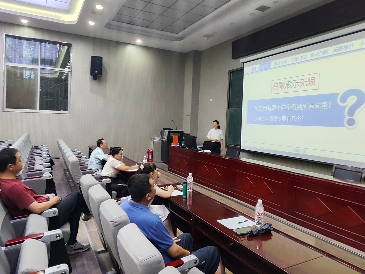 为深入贯彻习近平总书记教育指示精神,进一步提升青年教师教学能力,助力我院教师陈瑞芳备战省级教学技能竞赛, 8月8日下午,数学与统计学院分工会在207会议室举办2025年度青年教师教学技能大赛专项培训。此次培训特别邀请董乐、周芳、王振平、化小会四名教学专家现场指导,会议由院工会主席王岩主持。