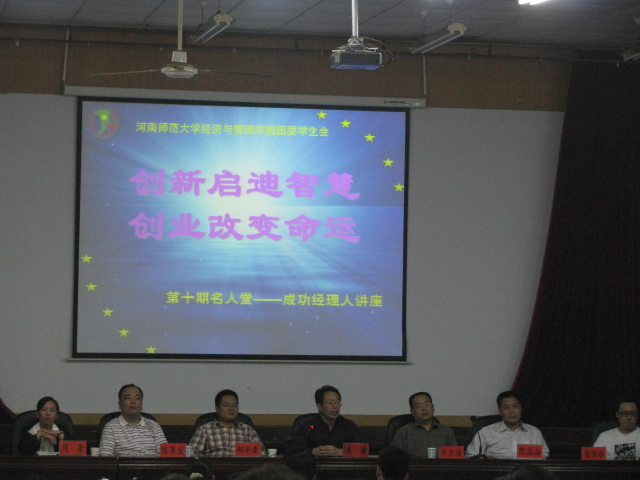 10月10日晚,伟德官网下载苹果版多功能报告厅里座无虚席。经济与管理学院在此举办了主题为“创新启迪智慧 创业改变命运”的第十期名人堂成功经理人讲座。该讲座邀请到了新乡市永健面业有限公司总经理申万福、新乡市仙源保健饮料公司总顾问郑华童、新乡市华兰生物医药公司技术总监副总经理陈磊山等知名企业家,为同学们讲述他们的成功之路。此外,经济与管理学院党委书记朱建、工商管理系主任兼辉县汽车配件有限责任公司副总陈酉宜、市场营销系老师兼“IMP——这一带”总策划人董雪冰、2010级辅导员周芳等领导老师也出席了此次讲座。