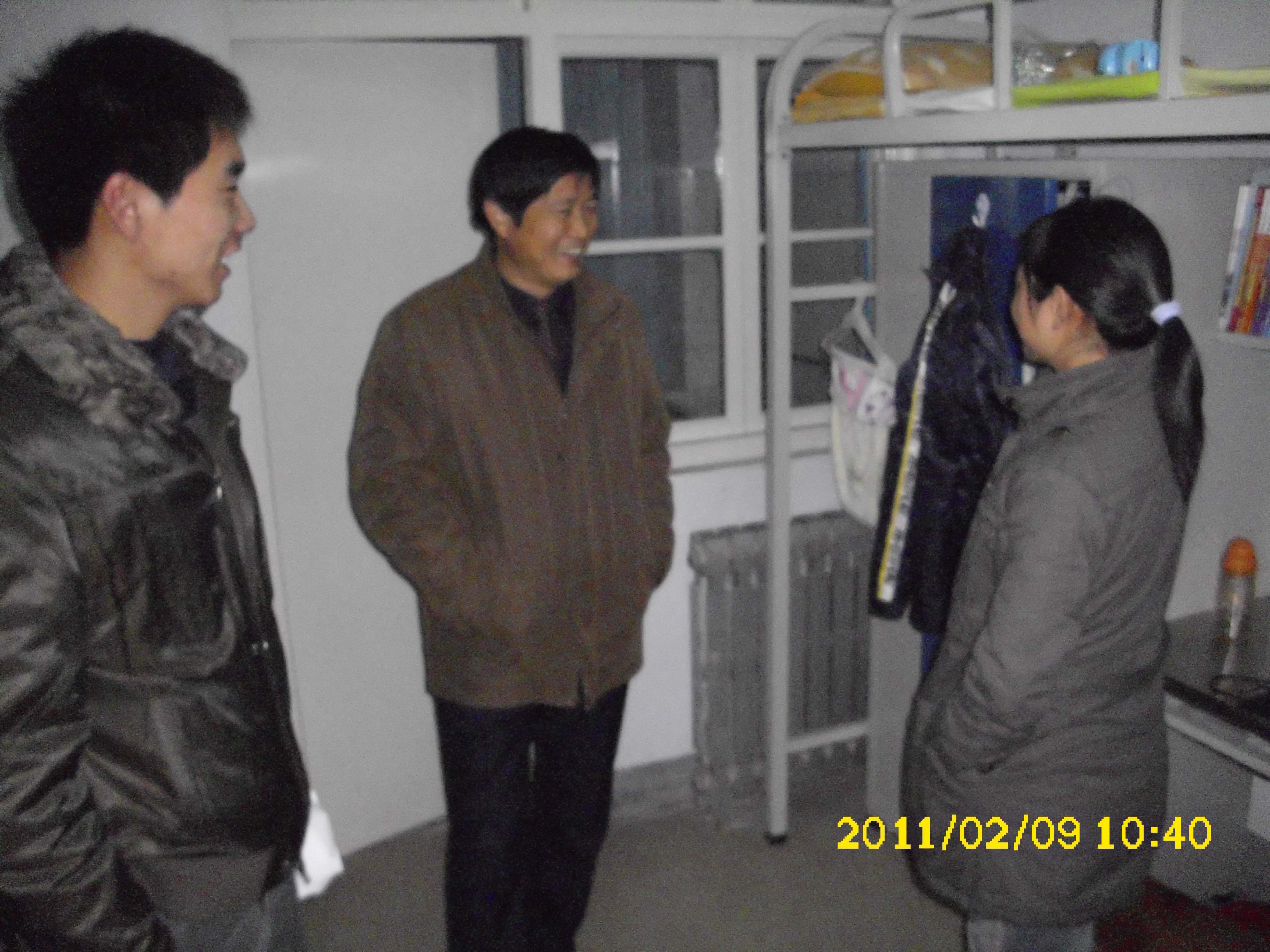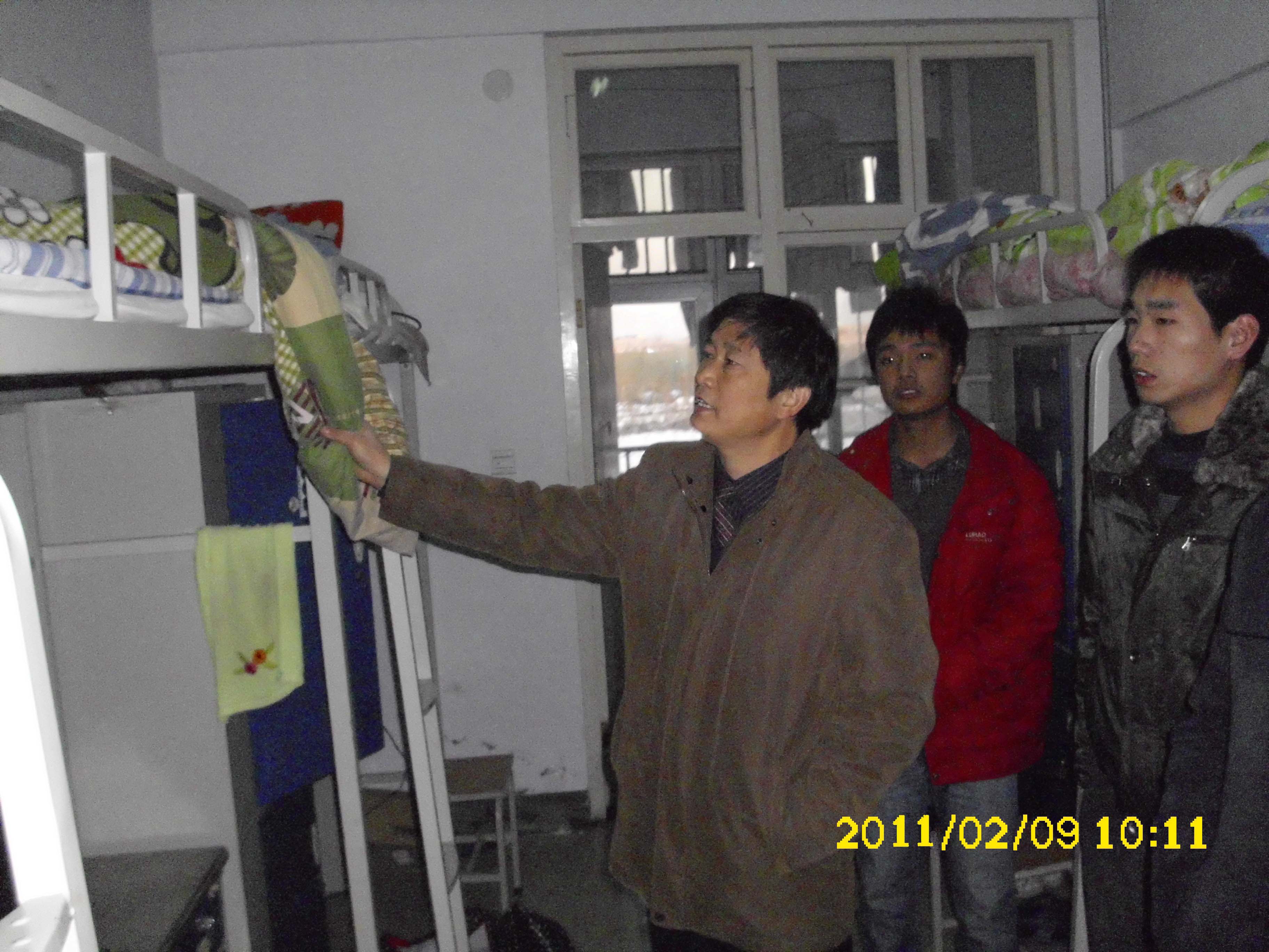 2011年11月16日下午4点,经济与管理学院党委副书记李杰带领学院全体政工干部及部分行政人员,对我院学生宿舍进行安全、卫生、过冬等情况进行突袭、全面检查。
