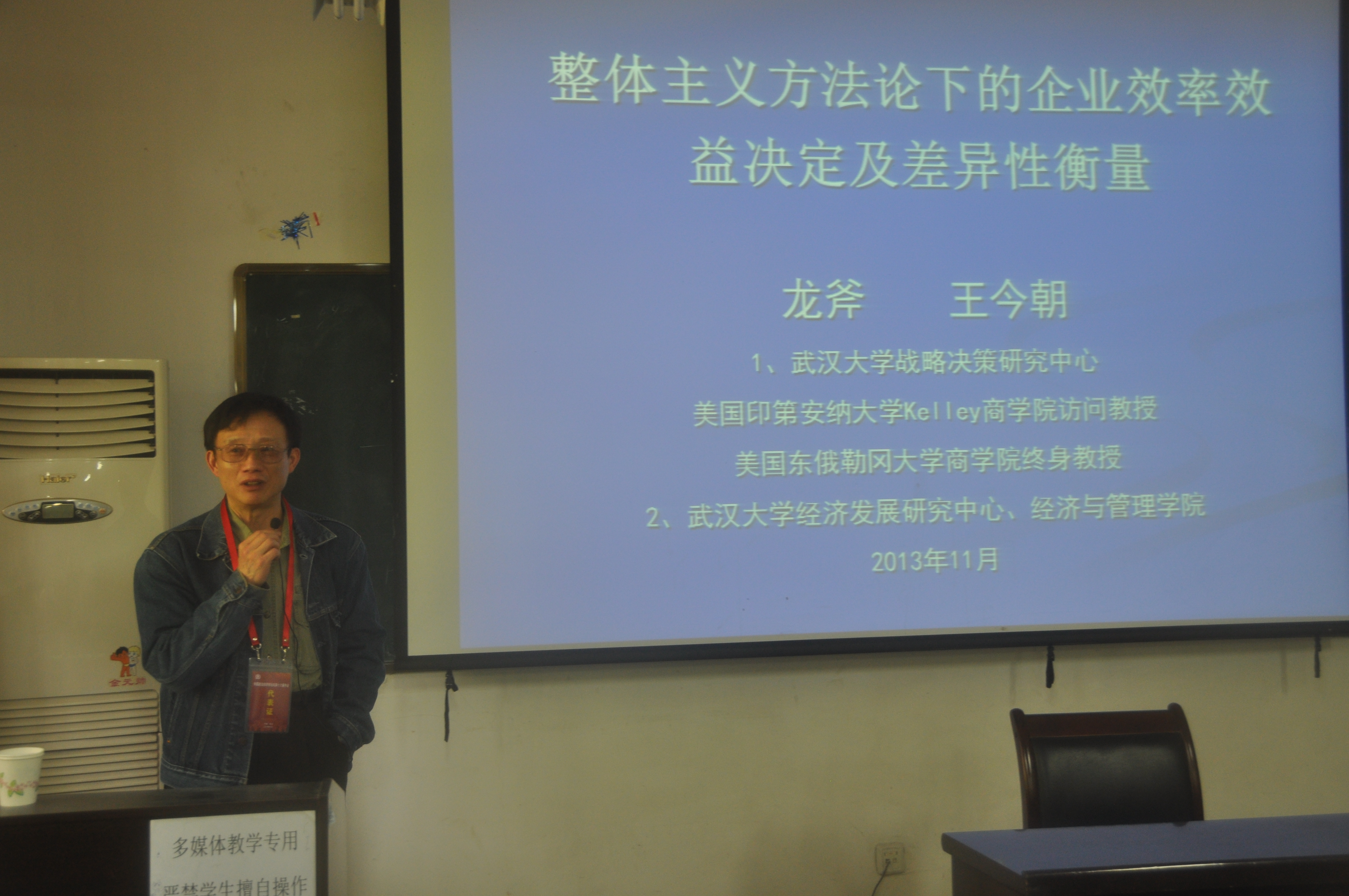 4月27日下午,美国东俄勒冈大学终身教授、武汉大学经济发展研究中心教授龙斧在商学院楼119做了一场题为“整体主义方法论下的企业效率效益决定及差异性衡量”的学术报告。学院领导及骨干教师、部分研究生、本科生共150余人听取了此次报告会,该报告会由学院副院长乔俊峰主持。