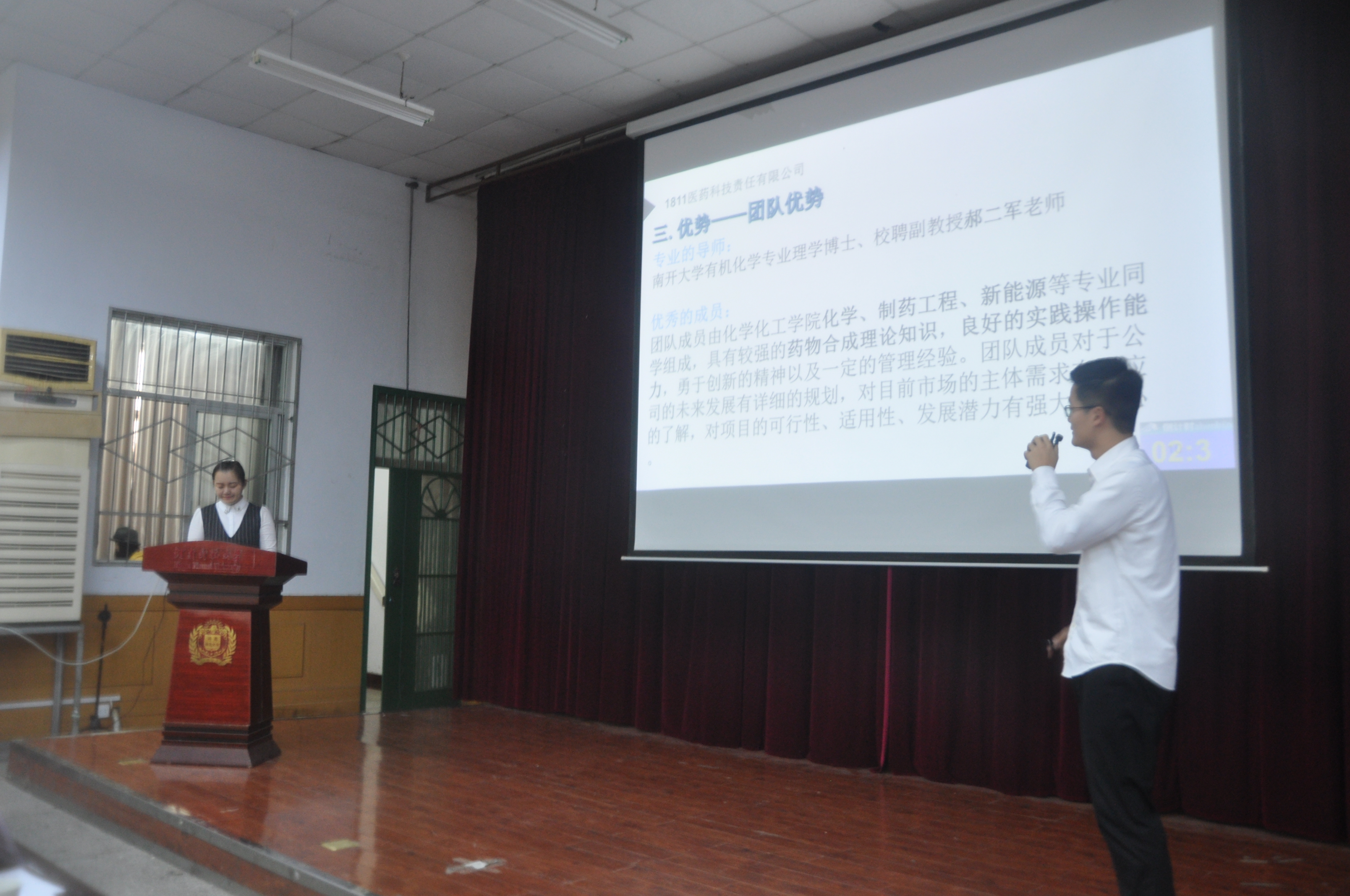 比赛伊始,主持人介绍到场嘉宾以及比赛流程。本次初赛分为“路演”和“现场答辩”两个环节。接着,20个团队按顺序依次进行项目展示。团队发言人对自己团队项目的“项目背景”、“产品简介”、“竞争优势”等六个方面进行了详细的介绍。其中,一些团队将专业特色与社会需求相结合,做出具有创新意义的特色项目,譬如“基于评级制度和分享经济的垂直互联网招聘新模式——咕咚网”项目团队提出运用新颖的网络虚拟技术进行企业招聘的计划,吸引了现场评委以及观众的眼球,获得了一致好评。比赛结束后,由楚金桥教授对初赛中20个团队的表现进行总结和点评。首先他肯定了同学们的积极参与和用心准备,接着他从项目不足之处进行细致分析,并针对不同的问题给出切实可行的建议。最后,由主持人公布入围决赛的项目名单,CRC医药科技有限公司等十个团队项目入选决赛。比赛在热烈的掌声中圆满落下帷幕。