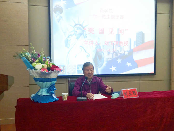 为深化一学一做教育实践,发挥共青团先进模范作用,提升广大团员的自身素质,4月27日下午4时,于商学院119报告厅举办了一场主题为“美国见闻”的一学一做主题团课。师大财经系(商学院前身)系主任、经济学博士、硕士生导师、在美国和加拿大有过丰富生活经历的刘玉珂教授被特邀为此次主题团课的主讲人。商学院团委书记兼2015级辅导员王岩,2016级辅导员郑园园受邀出席本次团课。2015级和2016级各班班长,团支书以及团员代表参加了本次团课。