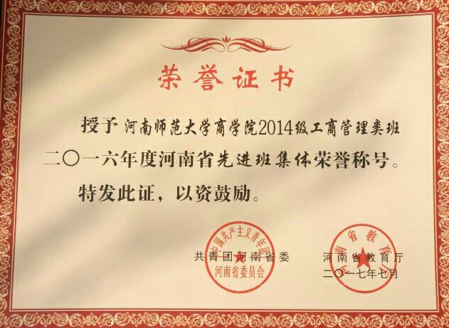 为表彰我省2016―2017年度优秀学子及优秀班级,鼓励同学们秉承优良传统、优秀学风不断进取,经过长期评选,河南省普通高等教育三好学生、优秀学生干部和先进班集体的评选结果正式公示。我院七名优秀学子荣获省级三好学生,三名学子荣获优秀学生干部,2014级、2015级工商管理类专业班荣获省级先进班集体荣誉称号,特向全院师生报喜。