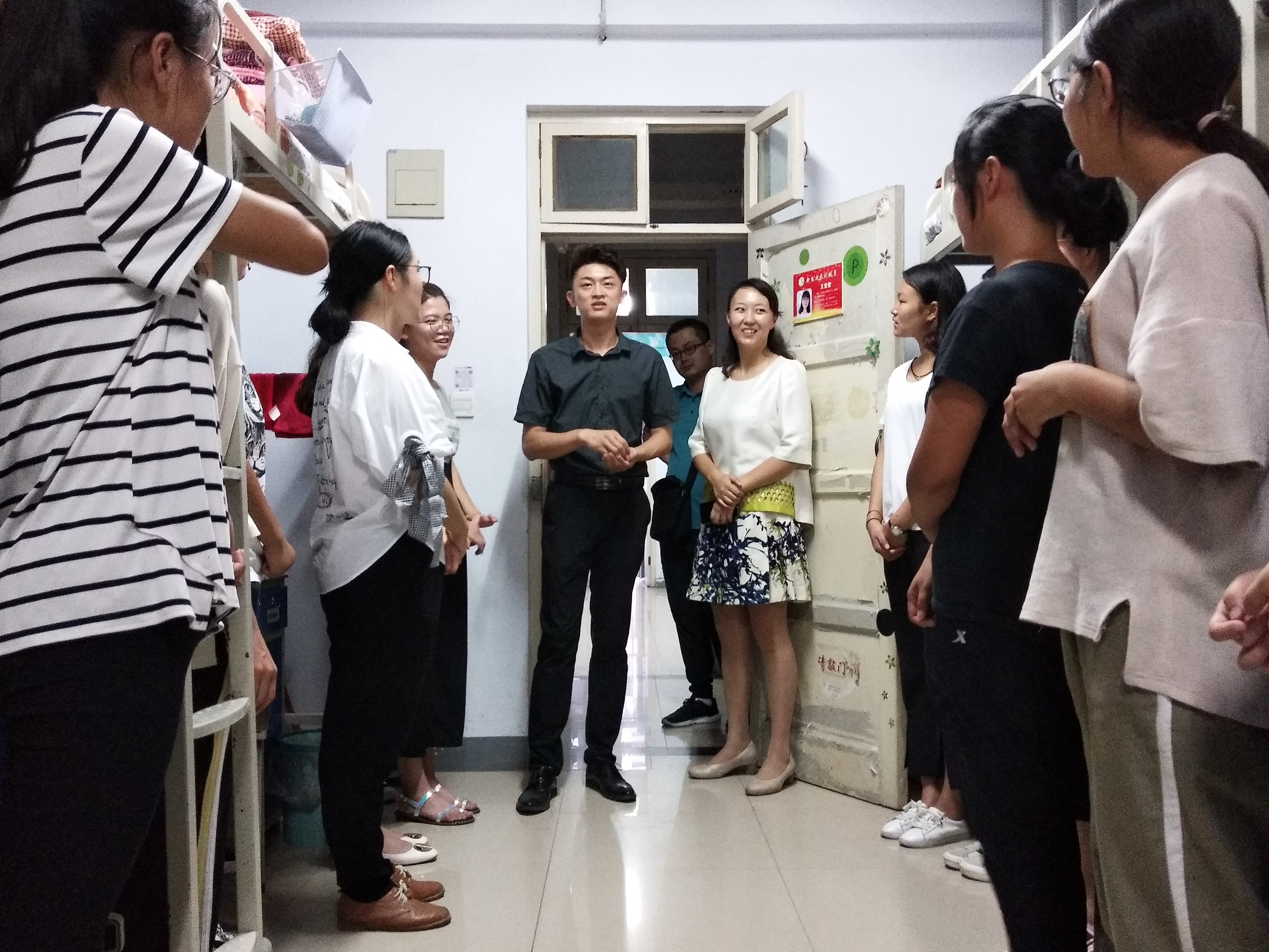 为及时了解2018级新生的在校情况,帮助新生尽早适应大学生活,9月9日晚,商学院全体领导班子和各年级辅导员深入新生宿舍慰问新生,代表学院全体教职工向新生们表示欢迎与关心。