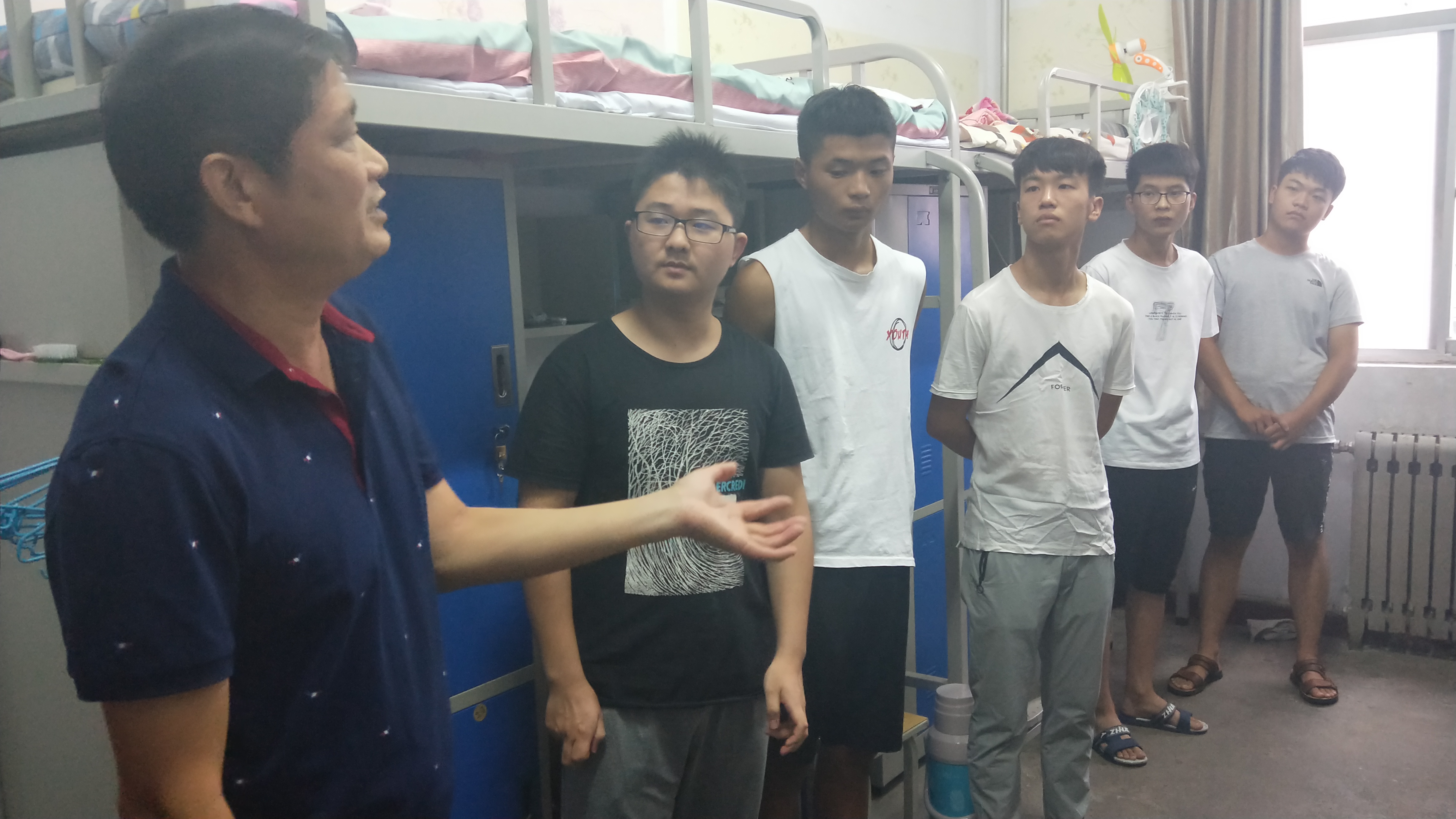 领导老师们深入各个新生宿舍,与同学们进行了亲切的交谈。李书记尤其关心学生的衣食住行问题,多次询问同学们在校是否有不适应的情况,同时也向新生们强调了寝室住宿中用水用电等的安全问题,叮嘱同学们遇到困难要及时向辅导员反映,积极应对。新生开学初期,学校来往人员复杂,段书记告诫同学们时刻注意人身财产安全,谨防诈骗,同时希望同学们快速适应大学生活,积极参与各项活动,提高自身综合素质。2018级辅导员聂广森提醒同学们及时关注年级信息,守时守纪听从安排。领导老师与新生谈生活、聊家乡、畅梦想,拉进了彼此间的距离,给新生以家的温暖。