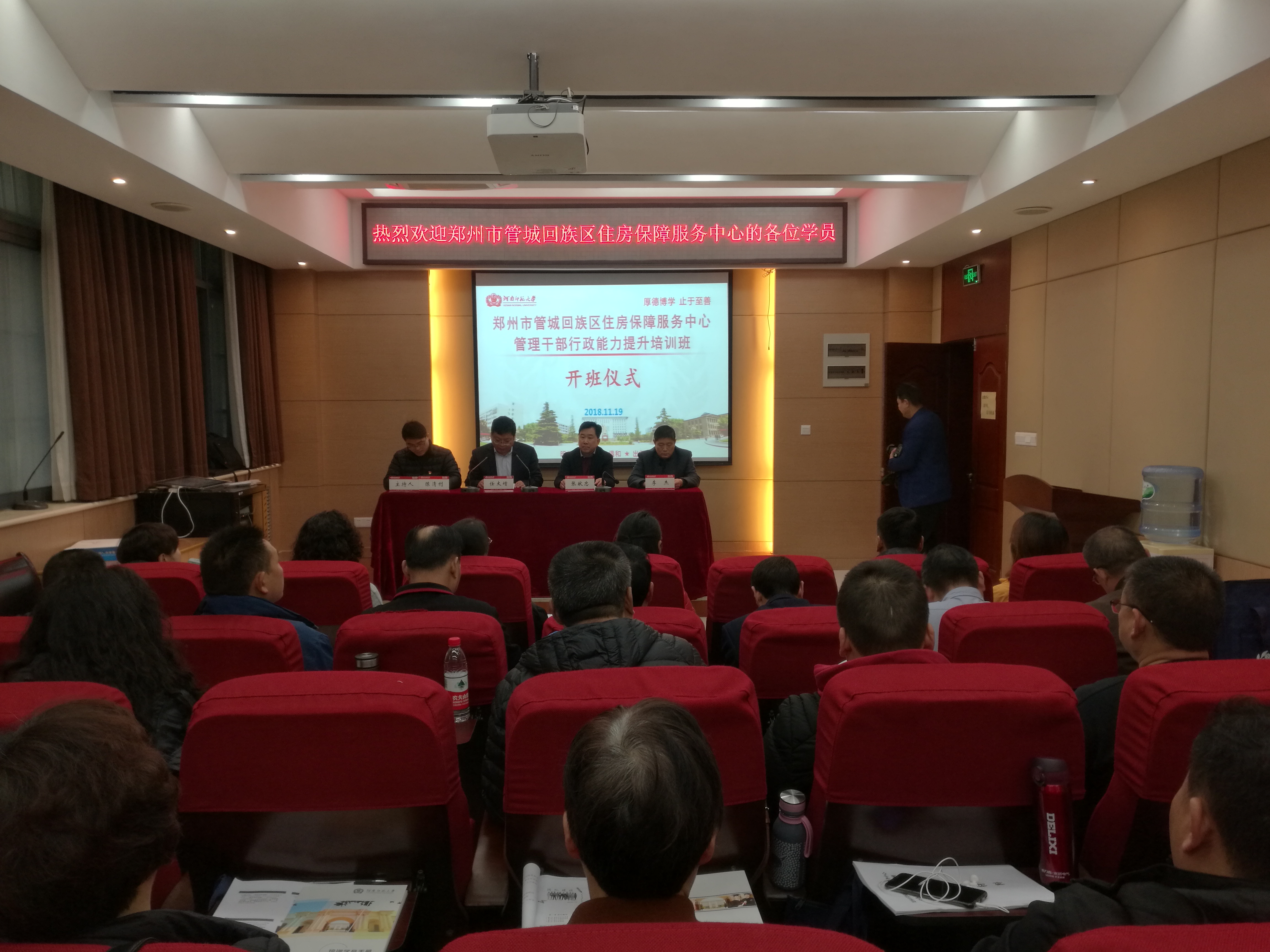 11月19日上午,郑州市管城回族区住房保障服务中心管理干部行政能力提升培训班开班典礼在伟德官网下载苹果版商学院119报告厅举行。商学院党委书记李杰、院长任太增、郑州市管城回族区住房保障服务中心党组书记、住房保障服务中心主任张献忠以及30名参训学员参加了开班典礼,开班典礼由商学院副院长陈清利主持。