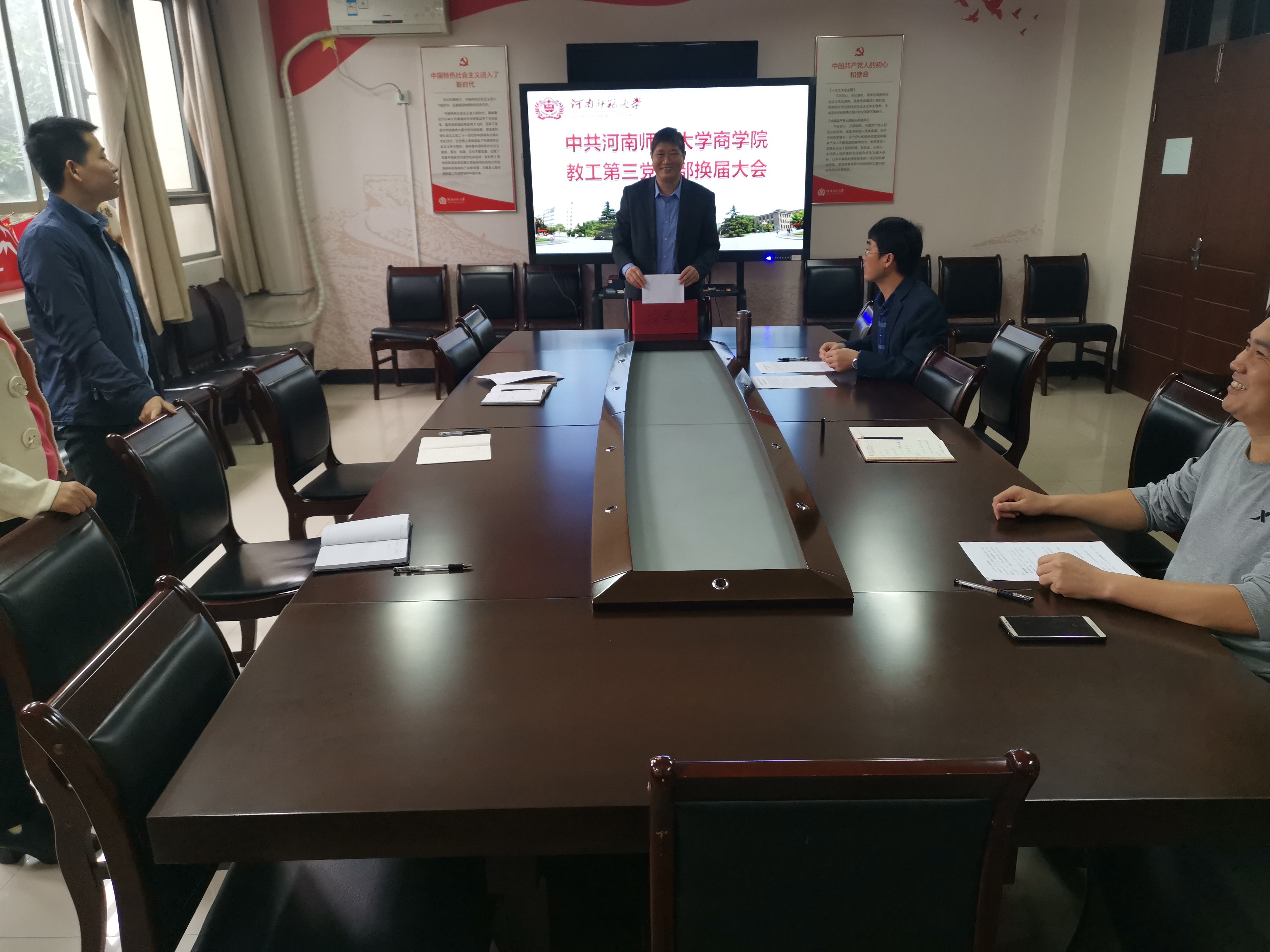 根据《中国共产党章程》《中国共产党党支部工作条例》《中国共产党基层组织选举工作暂行条例》《中国共产党普通高等学校基层组织工作条例》等要求,按照商学院党委统一安排部署,10月12日上午9时,中共伟德官网下载苹果版商学院教工第三党支部委员会在商学院党员活动室召开全体党员大会,开展党支部换届选举工作。学院党委书记李杰以普通党员身份参加会议,换届大会由王令耀同志主持。