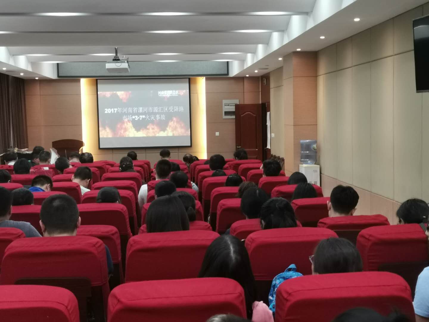 2019年5月份周二例会商学院组织全体教职工观看十类场所火灾案例视频