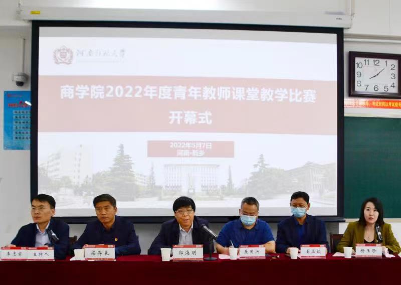 开幕式上,郭海明发表致辞。他强调,高校工作的核心是人才培养,良好的师德师风不仅是做好教学工作的基础,也是培养学生综合素质的前提。学校将汇聚政策合力,引育并举、以赛促改、以赛促教、以奖促学,打造有利于青年教师创新创造的政策支持和制度环境,希望老师们充分利用这些政策和条件,积极投身教学,提高教学能力和水平,展现更大作为。他充分肯定了商学院在教风学风建设、课程专业学习、教学讲学比赛等方面取得的良好成绩,并鼓励广大青年教师要真正做到铸师魂、立师德、正师风、树师表,做学生锤炼品格、学习知识、创新思维、奉献社会的引路人,为培育高素质时代新人贡献力量。随后,商学院院长杨玉珍宣读《商学院2022年度青年教师课堂教学比赛规程》。