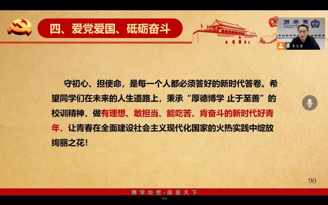 10月28日至11月6日,在商学院党委统一安排和各党支部的精心组织下,商学院学习宣传贯彻党的二十大精神“十个一”活动之“一节专题党课”陆续召开,学院10个党支部200余名师生党员和入党积极分子代表通过线上线下相结合的方式参加了活动。