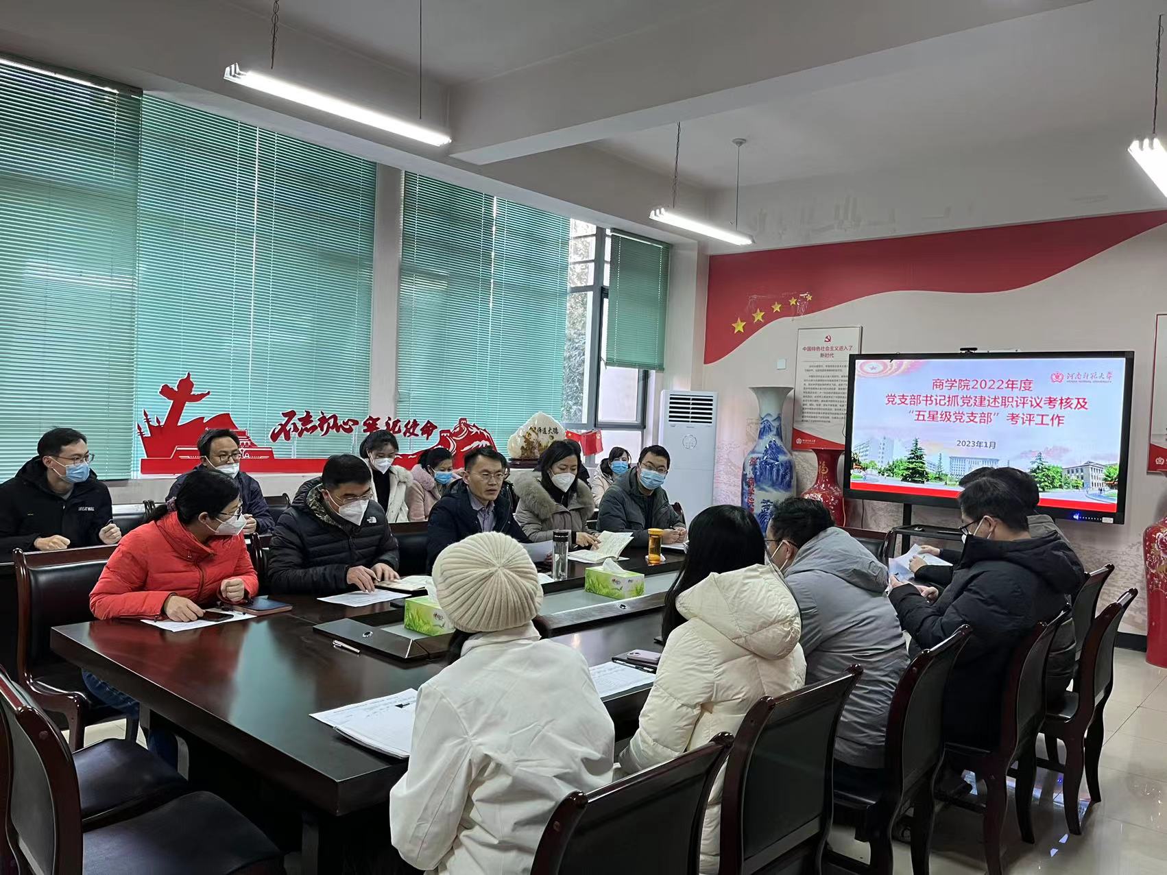 为提升学院党建工作科学化、规范化水平,促进党支部战斗堡垒作用和党员先锋模范作用的有效发挥,2023年1月6日上午,商学院召开2022年度党支部书记抓党建工作述职评议考核及“五星级党支部”考评工作会议。商学院党委委员、全体支部书记及党员教师代表出席本次会议。会议由学院党委书记李志前主持。
