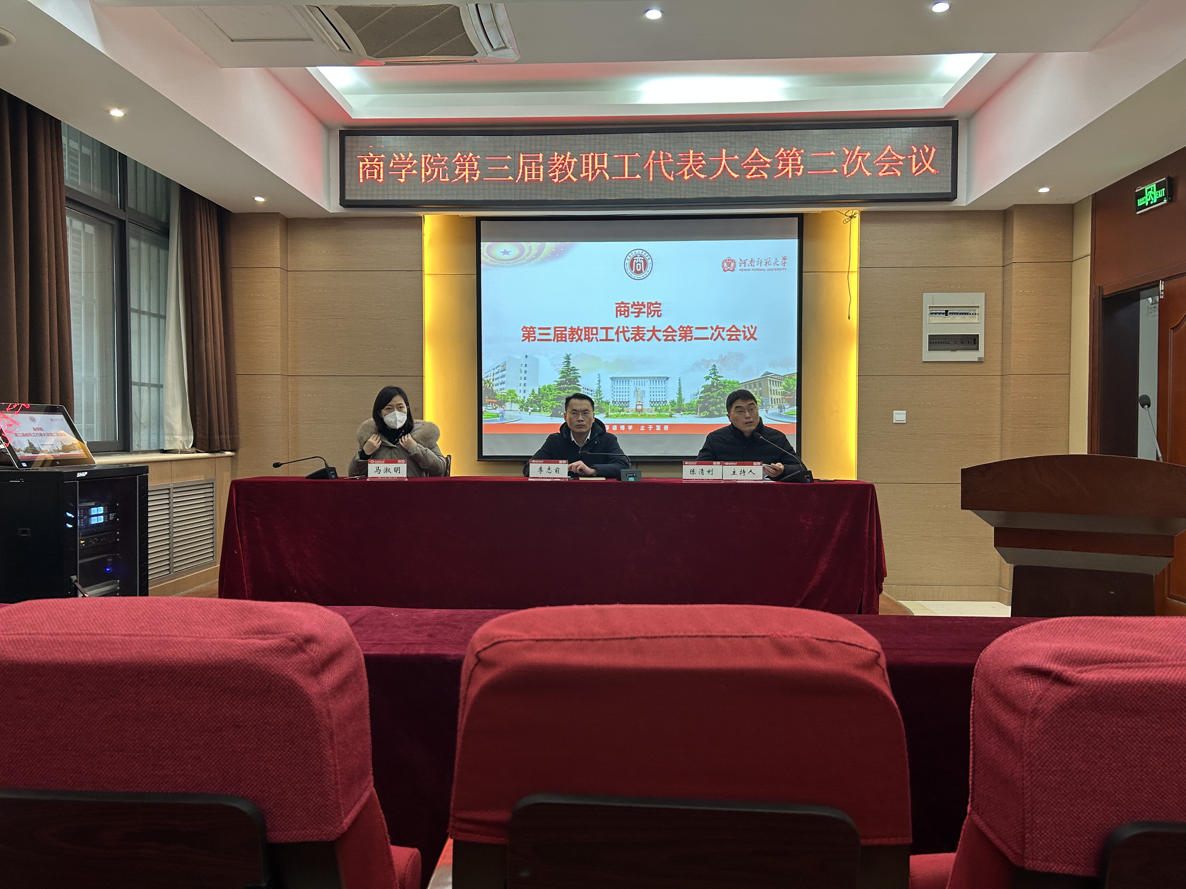 1月8日下午,商学院在办公楼119会议室召开了第三届教职工代表大会第二次会议,学院全体领导班子成员出席会议,32名教职工代表大会代表参加会议,会议由学院分工会主席陈清利主持。