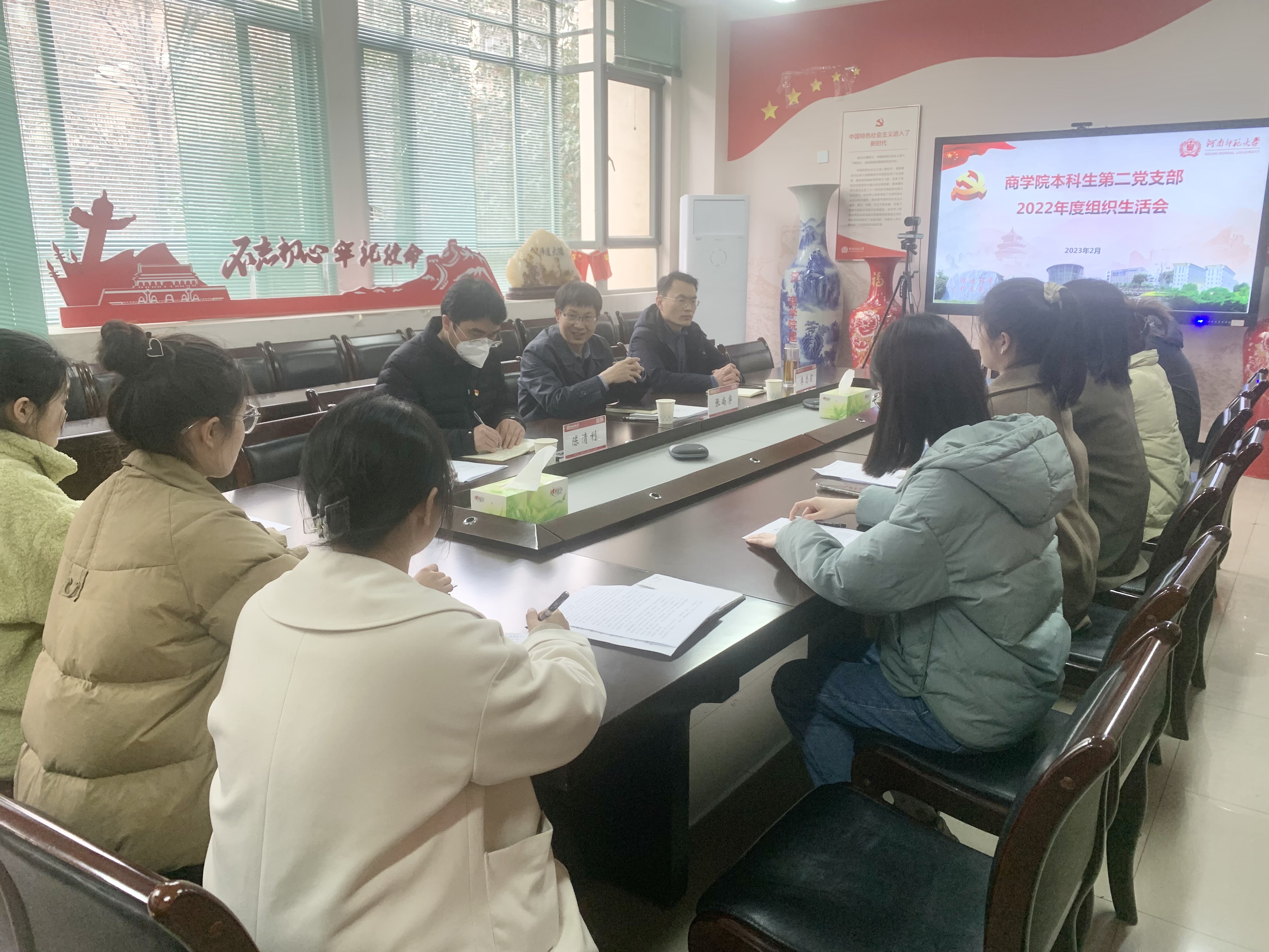 根据学校《关于召开2022年度基层党组织组织生活会、开展民主评议党员和“五星级党员”考评的通知》的文件精神,2月24日下午,商学院本科生第二党支部在学院二楼党员活动室召开2022年度组织生活会,并对照要求,开展民主评议党员和“五星级党员”考评工作。校党委副书记张尚字到会指导,支部全体党员参加了会议。会议由党支部书记郭琛昊主持。