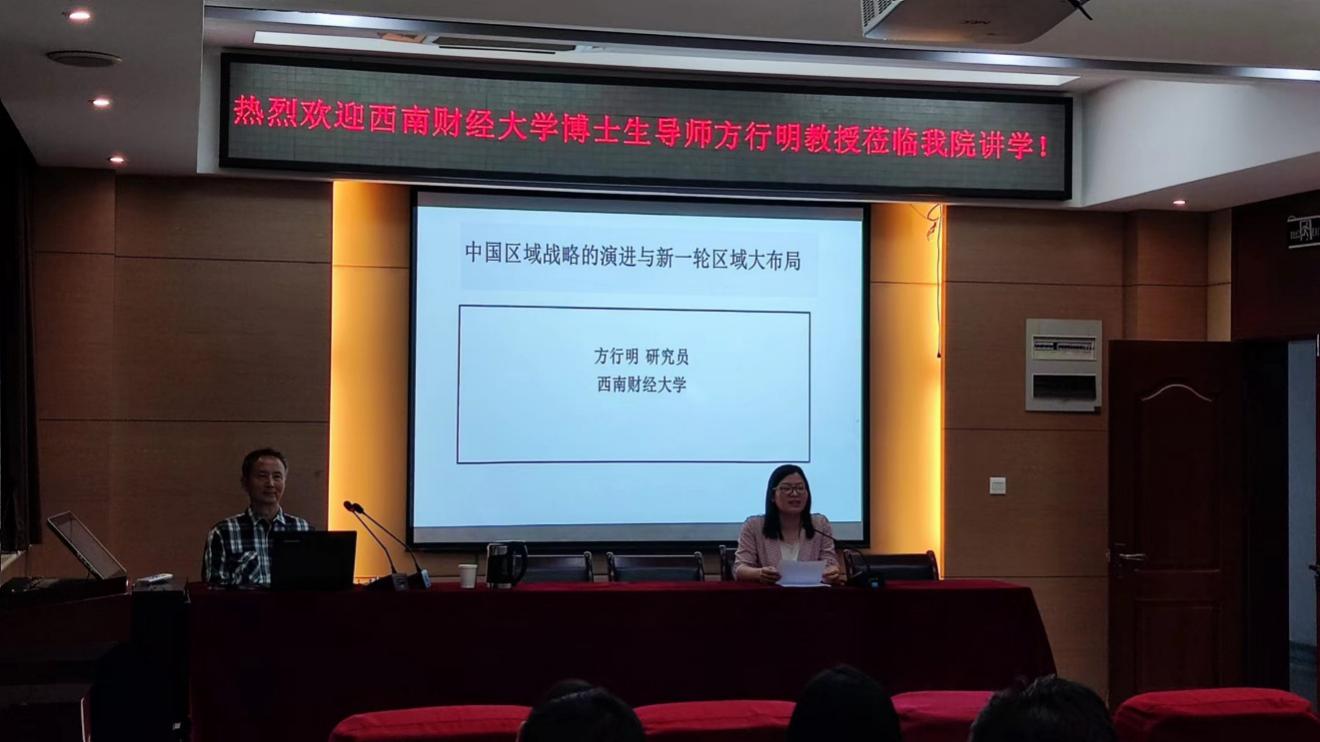 9月18日,应商学院邀请,西南财经大学经济学院博士生导师方行明教授为学院师生作了题为《中国区域战略的演进与新一轮区域大布局》的专题报告,相关学科教师、研究生和本科生100余人参加了报告会,报告会由商学院副院长李荣华主持。