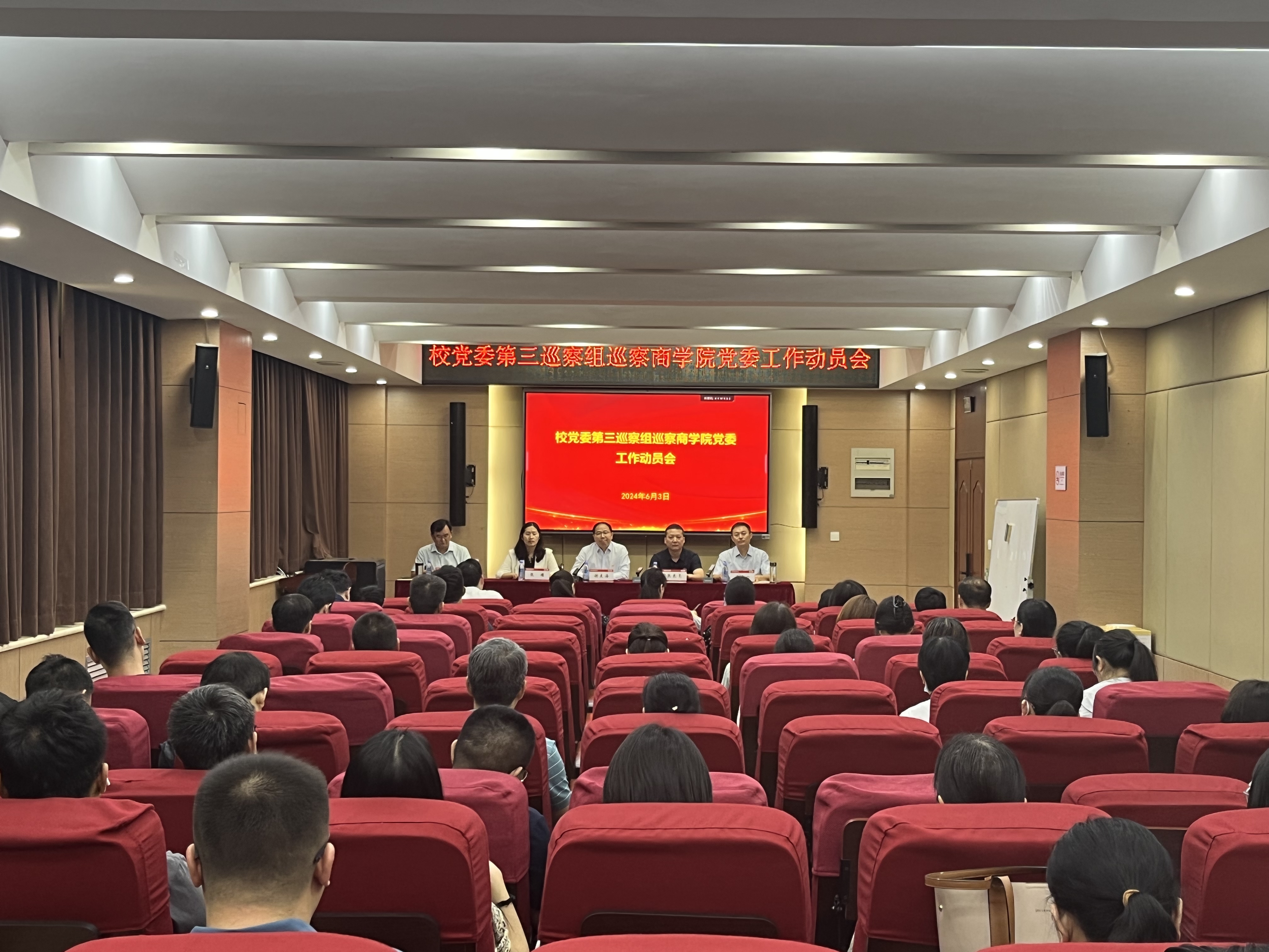 根据学校巡察工作安排,6月3日上午,党委第三巡察组进驻商学院工作动员会召开。党委第三巡察组全体成员,党委巡察办工作人员,商学院领导班子成员、全体教职工参加动员会。会议由商学院院长刘英基主持。