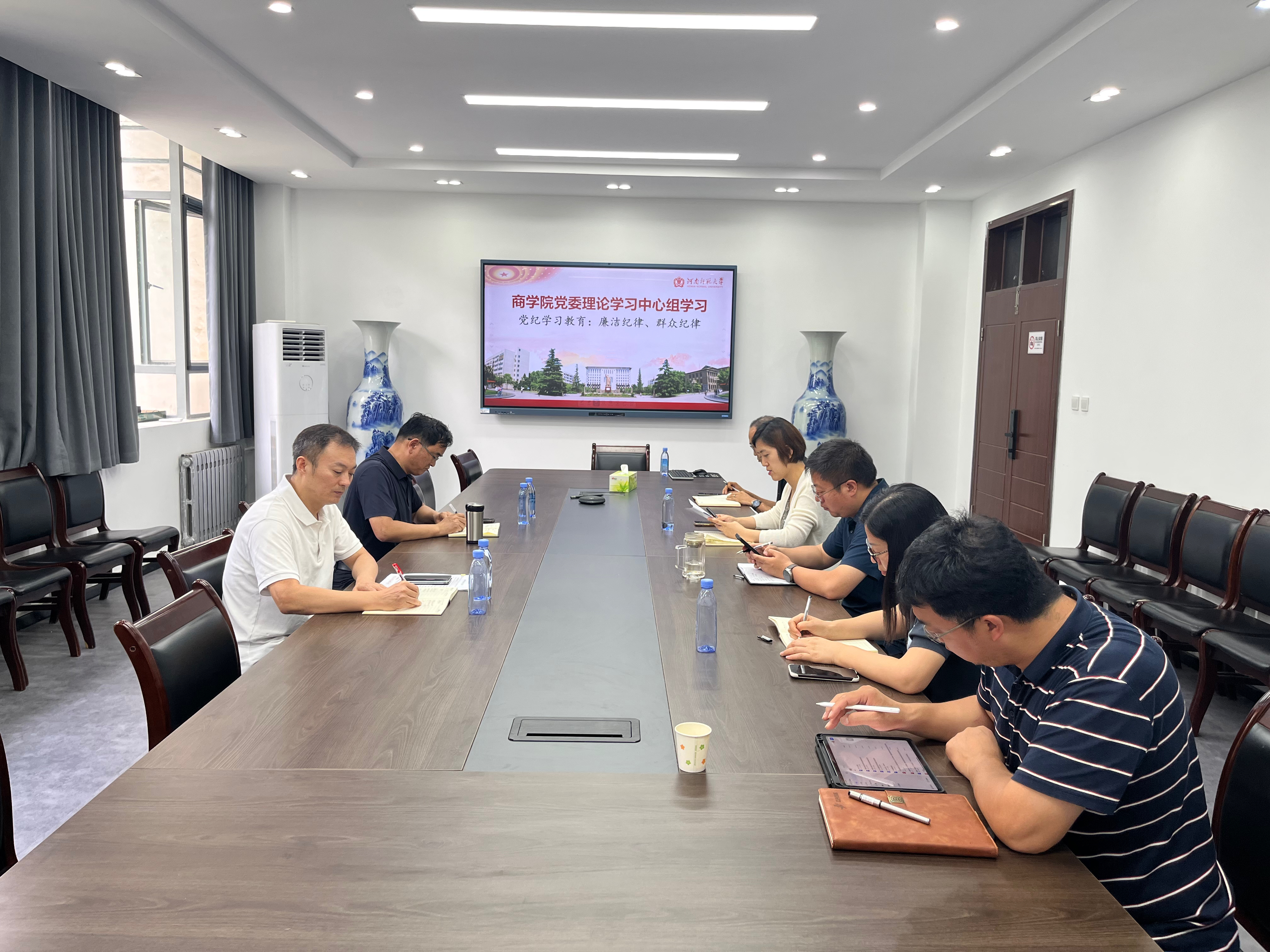 7月9日上午,商学院党委在学院224会议室召开党委理论学习中心组学习会议,学习研讨《中国共产党纪律处分条例》中“廉洁纪律”和“群众纪律”相关内容。学院党委理论学习中心组全体成员参加学习,会议由学院党委书记许天心主持。