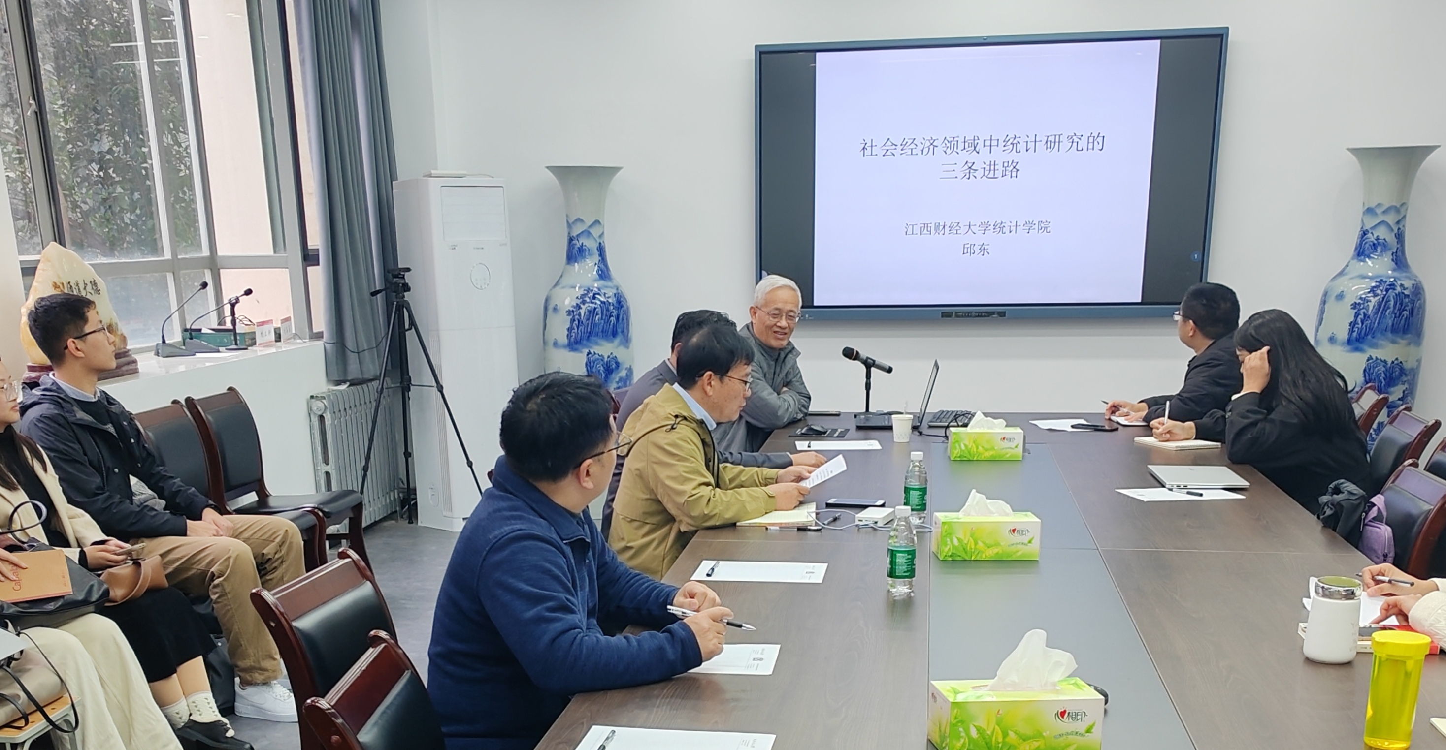 11月15日,教育部长江学者特聘教授,博士生导师,江西财经大学邱东教授应邀作了题为《社会经济领域中统计研究的三条进路》的专题报告,深入探讨了统计学在社会经济研究中的应用与发展路径。商学院院长刘英基、副院长王喜刚与学院相关学科骨干教师以及研究生代表50余人参加。