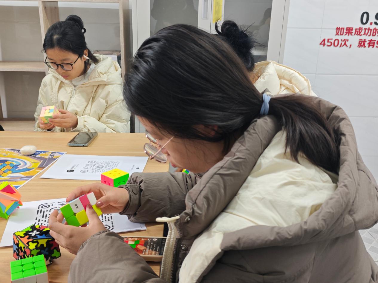 本次活动共分为“技巧讲解”、“实践操作”、“总结交流”三个环节。在“技巧讲解”环节中,活动负责人系统而全面地对魔方的基本构造、解法原理、高级技巧进行介绍,并结合自身在魔方领域的探索历程,分享实战经验与学习心得。在“实践操作”环节中,活动负责人指导同学们进行实践操作,在转、拧、扭、拨的一系列动作中探寻魔方的奥秘,逐步锻炼手眼协调能力与空间想象能力。在“总结交流”环节中,活动负责人对关键知识点与技巧进行精炼而深刻的总结,对同学们的实践操作给予充分认可,并鼓励同学们继续深化对魔方的学习与研究,不断挑战自我极限。活动结束后,同学们意犹未尽,积极分享自己的经验感受。其中,2024级经济学专业王猛谈到:“通过这次活动,我的创新意识和逻辑思维能力得到锻炼,魔方竞技下所蕴含的坚持不懈精神也令我难以忘怀。”