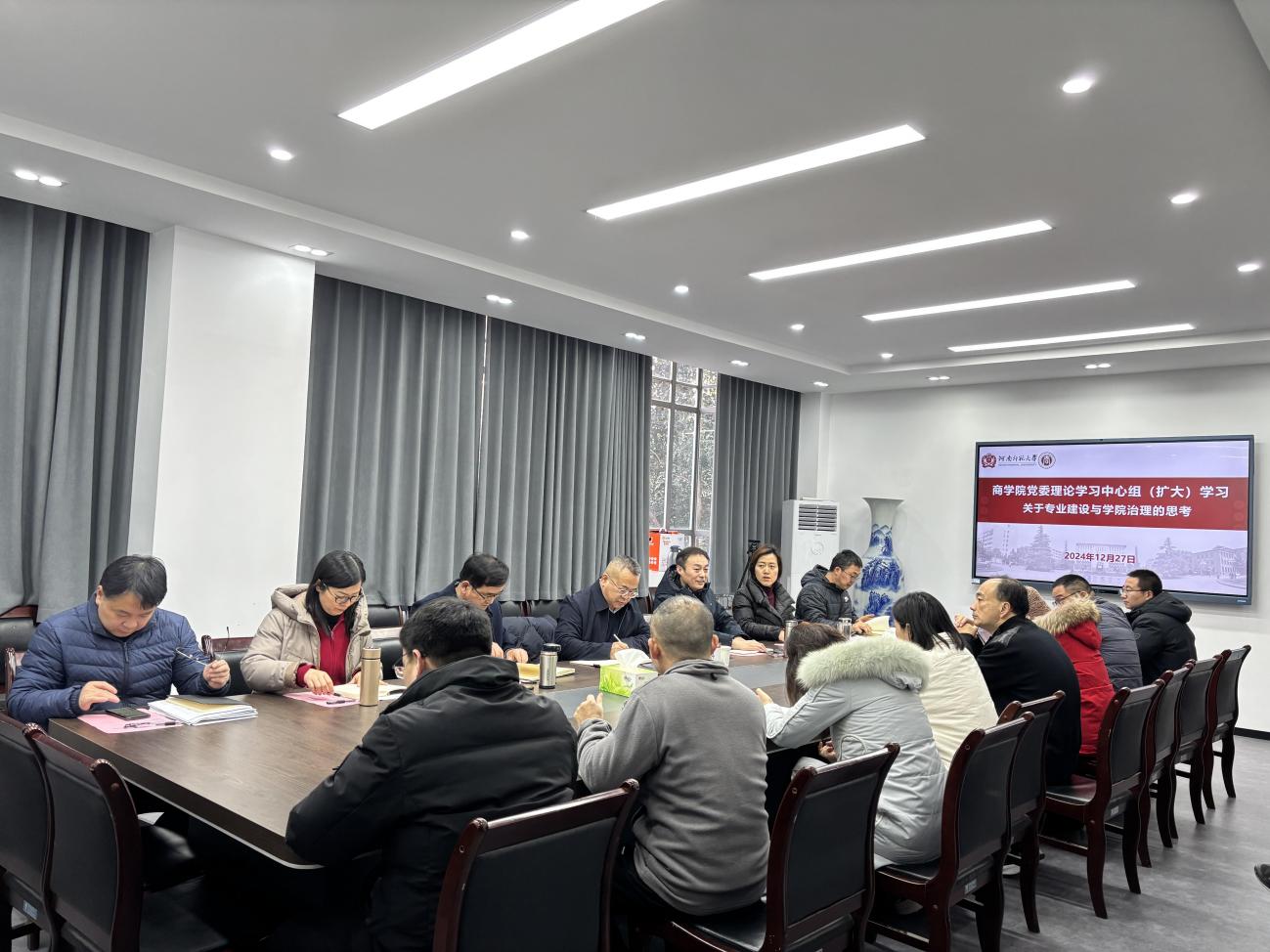 为深入学习贯彻党的二十届三中全会精神,推动专业建设、优化内部治理,12月27日下午,商学院在学院二楼会议室召开党委理论学习中心组(扩大)学习会,校党委常委、副校长聂国兴受邀参会。学院党委理论学习中心组成员、科级以上干部参加学习。会议由学院党委书记许天心主持。