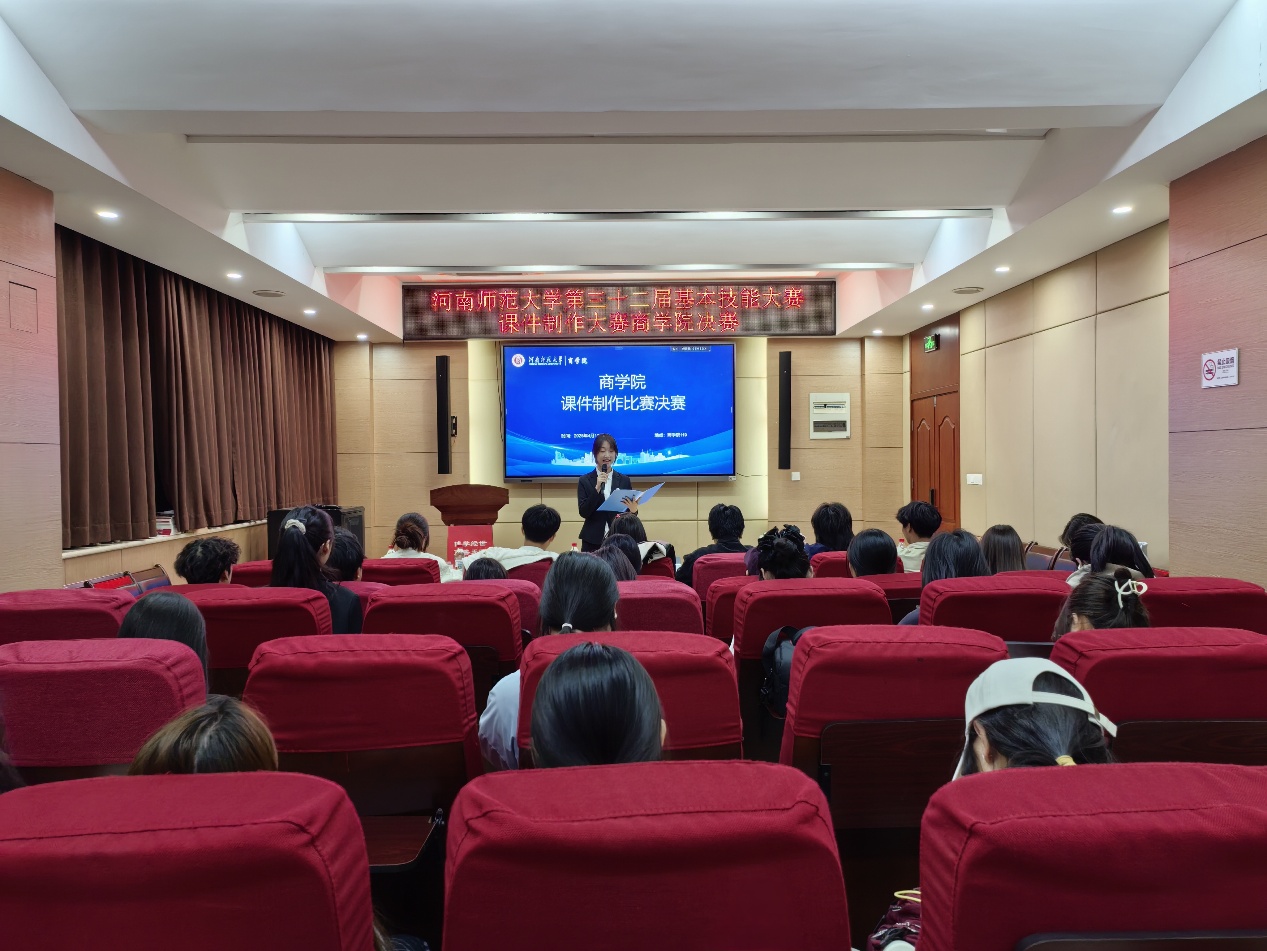 为激发学生创新设计思维,锤炼学生课件制作技能,4月15日晚,商学院于学院119报告厅举办第三十二届课件制作大赛院级决赛。商学院团委副书记张文静、学生会执行主席贾城梁及各部门负责人担任评委。此次大赛面向商学院全体学生,学院学子踊跃参赛。