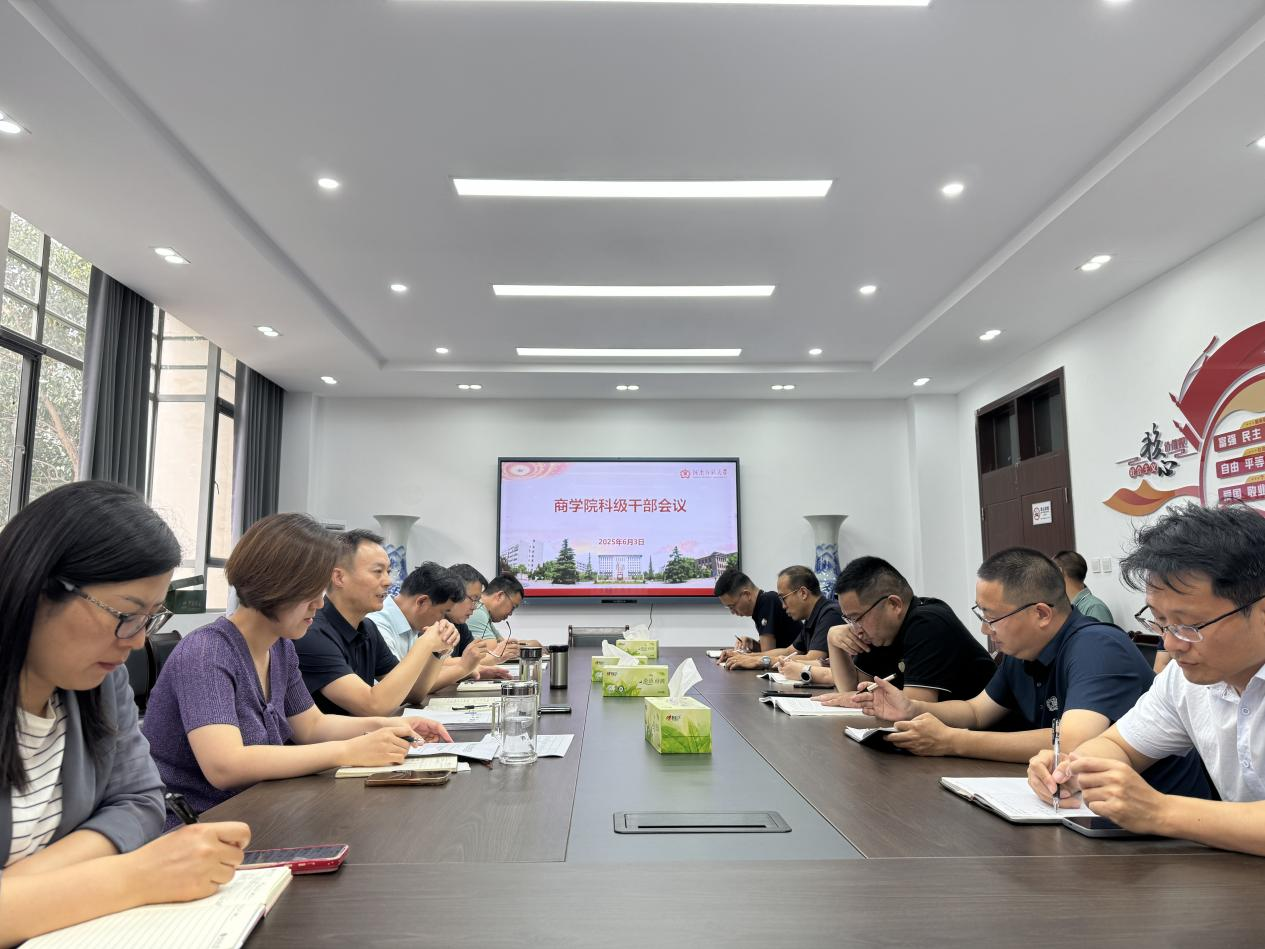6月3日上午,商学院党委召开科级干部会议。会议由学院党委书记许天心主持。院党委委员、班子成员、全体科级干部参加会议。