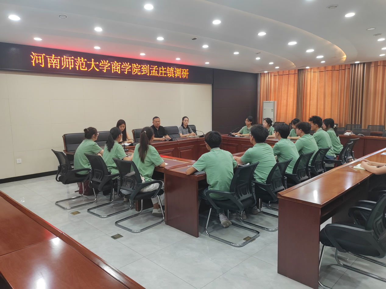 上午,调研团师生与孟庄镇政府工作人员开展座谈交流。工作人员详尽介绍了孟庄镇产业与经济发展现状,重点解读了该镇近年来推进的人才引进工作举措与显著成效。从营造良好的营商环境到提供人才公寓,从“岗位定向培养计划”到“政校企合作”平台,每一条政策都如同一粒粒种子,播撒在乡村发展的沃土中,为乡村振兴注入了蓬勃的活力。座谈会上,同学们认真聆听,积极提问,工作人员围绕大学生返乡就业创业面临的现实困境,结合宏观数据和具体案例为同学们一一解答。本次交流座谈会为调研团后续的访谈调研工作指明了方向。