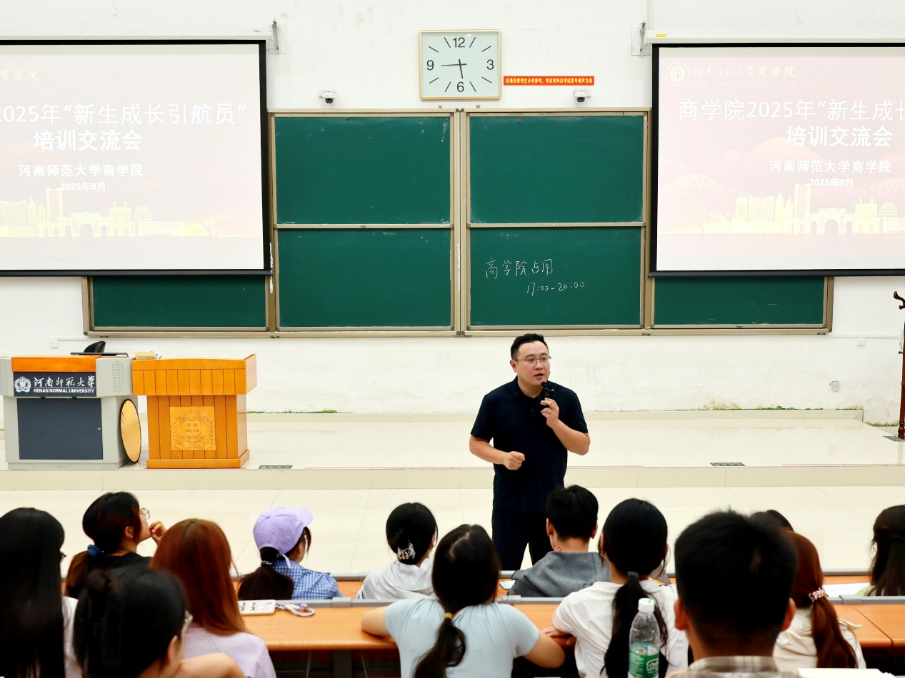 为提升同学们的引导与帮扶能力,保障商学院迎新工作顺利进行,9月5日下午,商学院于文昌楼102教室举办2025年“新生成长引航员”培训交流会。商学院团委副书记郭琛昊及全体引航员参加本次会议。