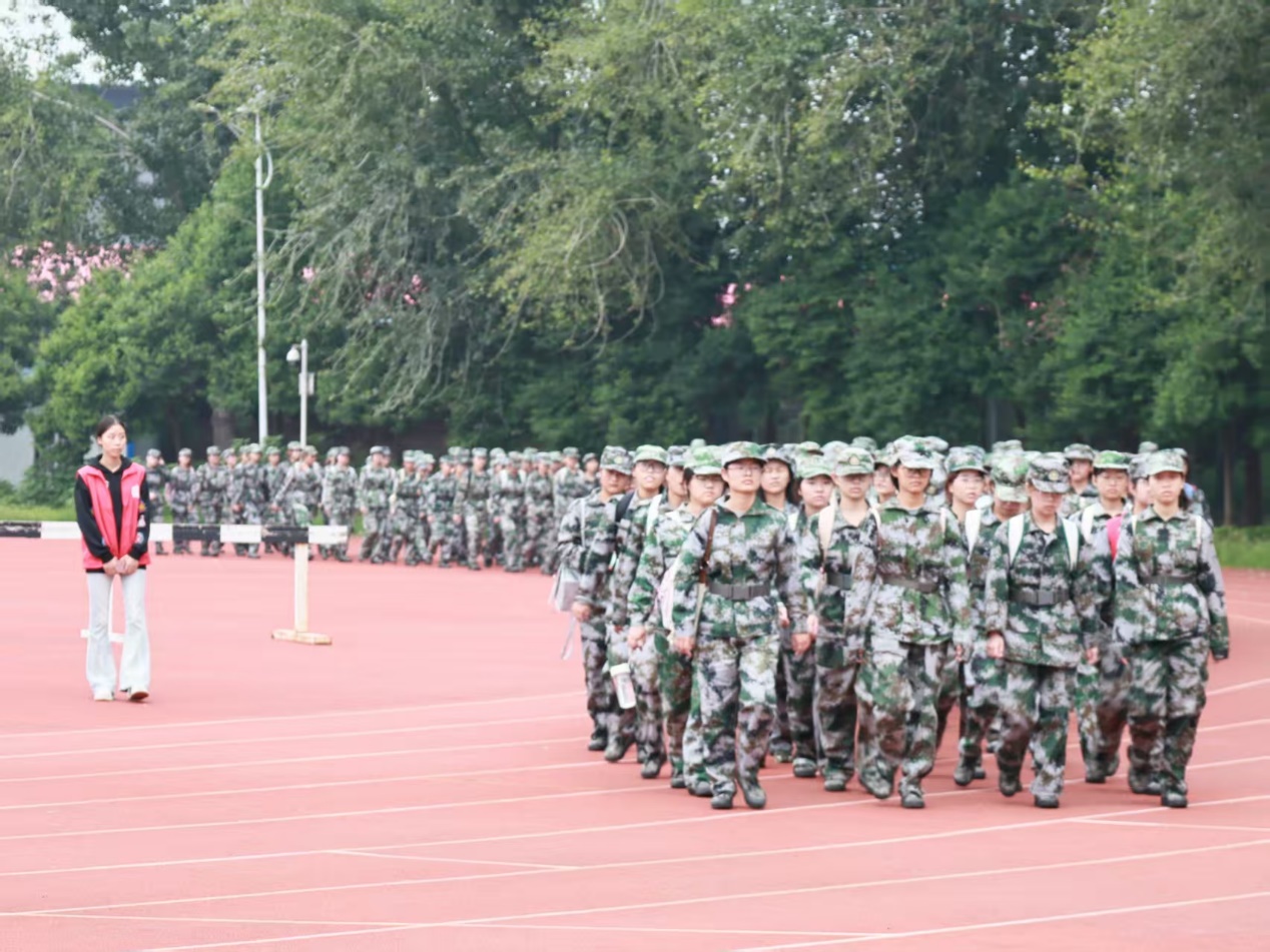 金秋送爽,沙场点兵。大会在庄严的国歌声中拉开帷幕。伴随着激昂的分列式进行曲,各受阅方队军姿挺拔、口号嘹亮,依次通过主席台接受检阅。同学们步伐铿锵有力,动作整齐划一,坚毅的目光与青春的朝气交相辉映,充分展现出军事训练的卓越成效。分列式后,精彩的军事科目汇报表演将现场气氛推向高潮。男子军体拳方队虎虎生威,一招一式尽显阳刚之气;女子匕首操方队英姿飒爽,动作敏捷利落。整个表演过程组织严密、气势如虹,看台上掌声雷动,充分体现出2025级新生良好的综合素质和顽强的品格意志。