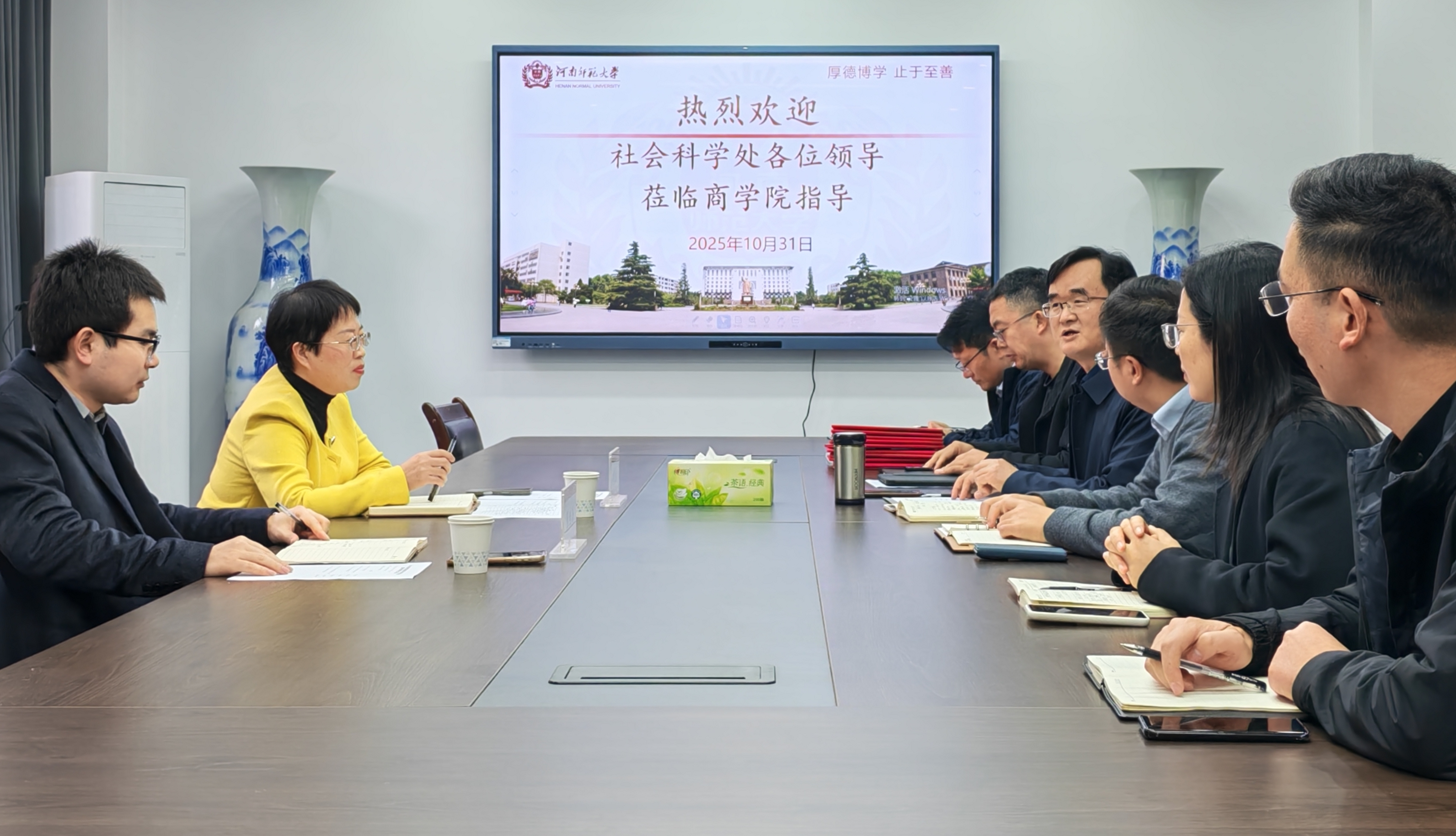会议分为两个环节。第一个环节为专题调研,由社会科学处听取学院申报工作汇报。商学院副院长刘新争围绕近五年国家社科基金、国家自科基金和教育部人文社科项目中经管学科立项情况、2026年度国家级项目学院申报摸排情况和四级论证方案、2025年以来高层次学术交流情况,以及2026年申报工作存在的挑战与对策五个部分,汇报了学院申报工作的推进情况。他还回顾了“十四五”以来学院在科研组织机制优化、导师制落实、学术交流平台搭建等方面的举措与成效,并重点介绍了2026年度学院在学科交叉、团队建设、申报策略等方面的规划。赵黎波对商学院在国家级项目申报和科研组织培育方面取得的成绩予以充分肯定。她指出,学院应进一步强化先期的选题论证工作、压实科研导师责任、积极打造和培养科研骨干。张继汝建议,论证过程中应注重跨院系经验交流,拓展多学科、多方向的申报渠道,精准把握项目申报政策的新变化,加强精细化指导,积极发掘新的申报类别、学科和群体的增长点。