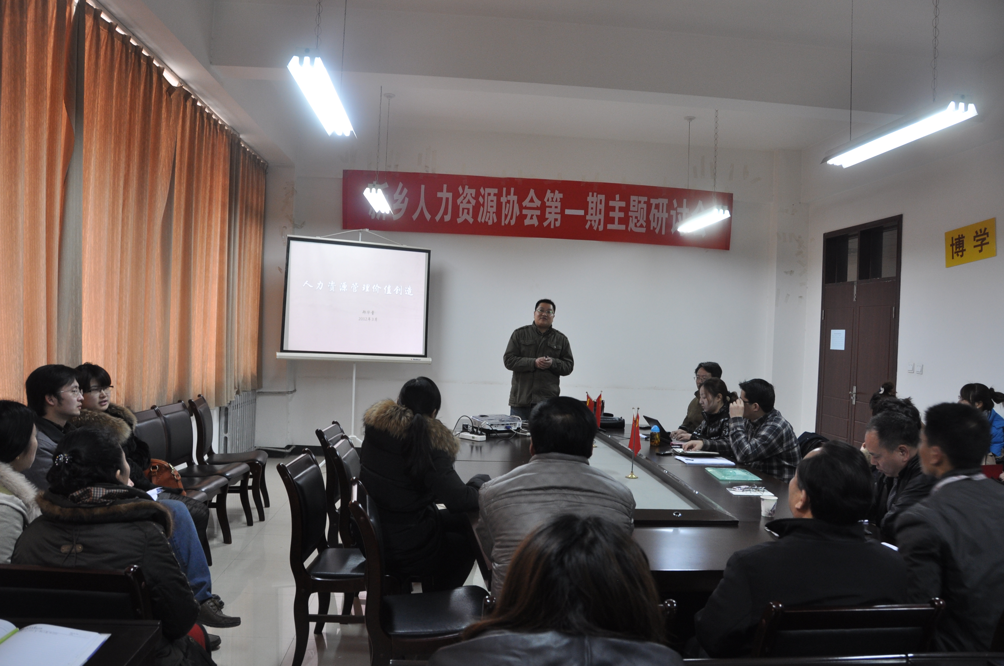 2月26日上午,新乡市人力资源协会第一次主题研讨会在我院会议室举行,协会会长北京博日企业管理咨询资深顾问郑华童先生,副会长我院党委书记朱建、新乡市人力资源保障就业局负责人、协会秘书长新乡天丰钢构公司行政总监张涛先生和佐今明药业公司、金龙集团公司、科隆公司、环宇集团等公司出席了研讨会,协会会员60余人针对目前的人力资源管理的热点问题进行了研讨。
