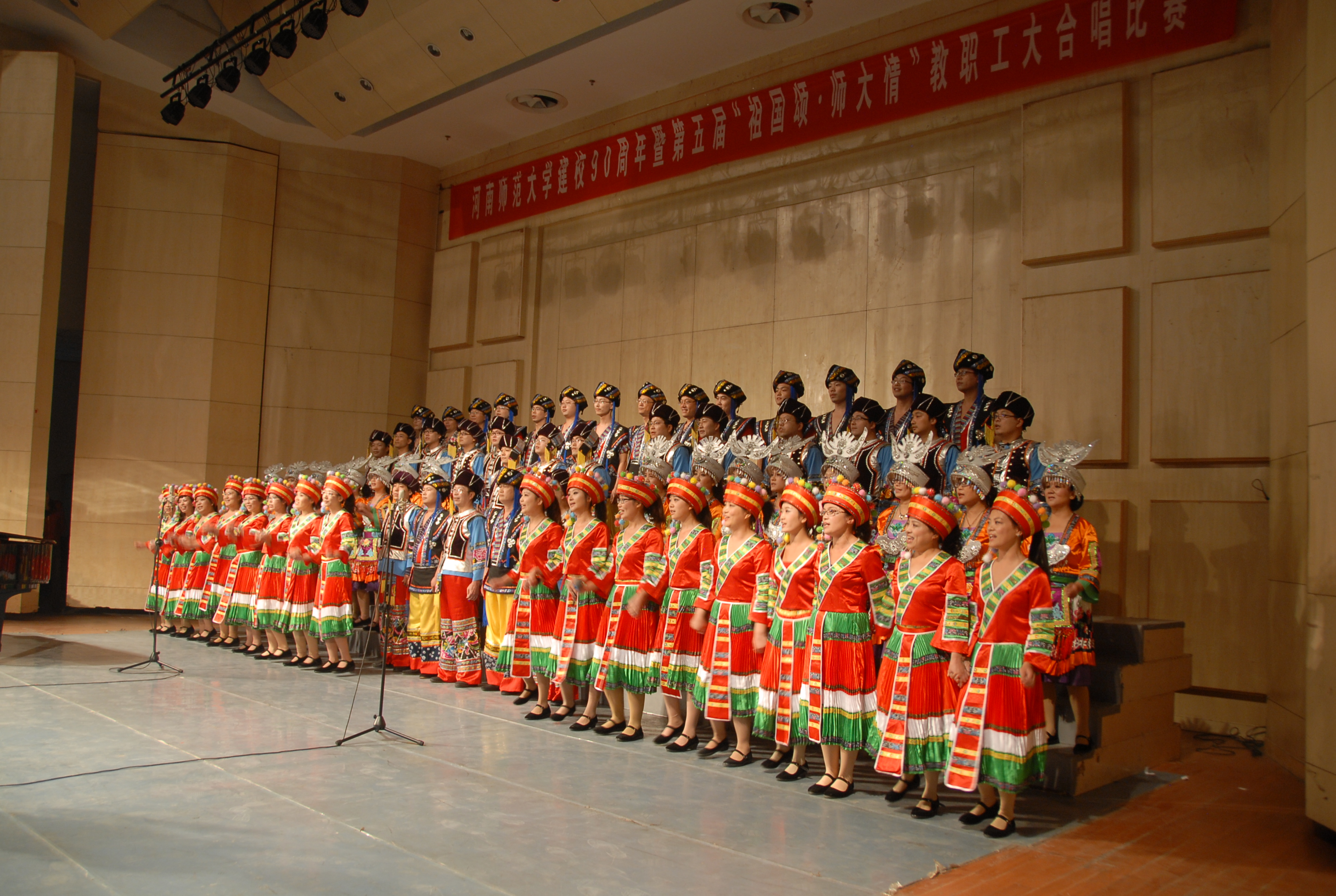 10月22日下午,音乐厅里,歌声嘹亮,掌声雷动,我校举行庆祝建校90周年暨第五届“祖国颂·师大情”教职工大合唱比赛。校党委书记周铁项、副校长黑建敏、校长助理吴益民等领导观看了比赛,我院以一曲自选曲目《远方的客人请你留下来》惊艳出场,并一举获得了全校一等奖第二名的好成绩。