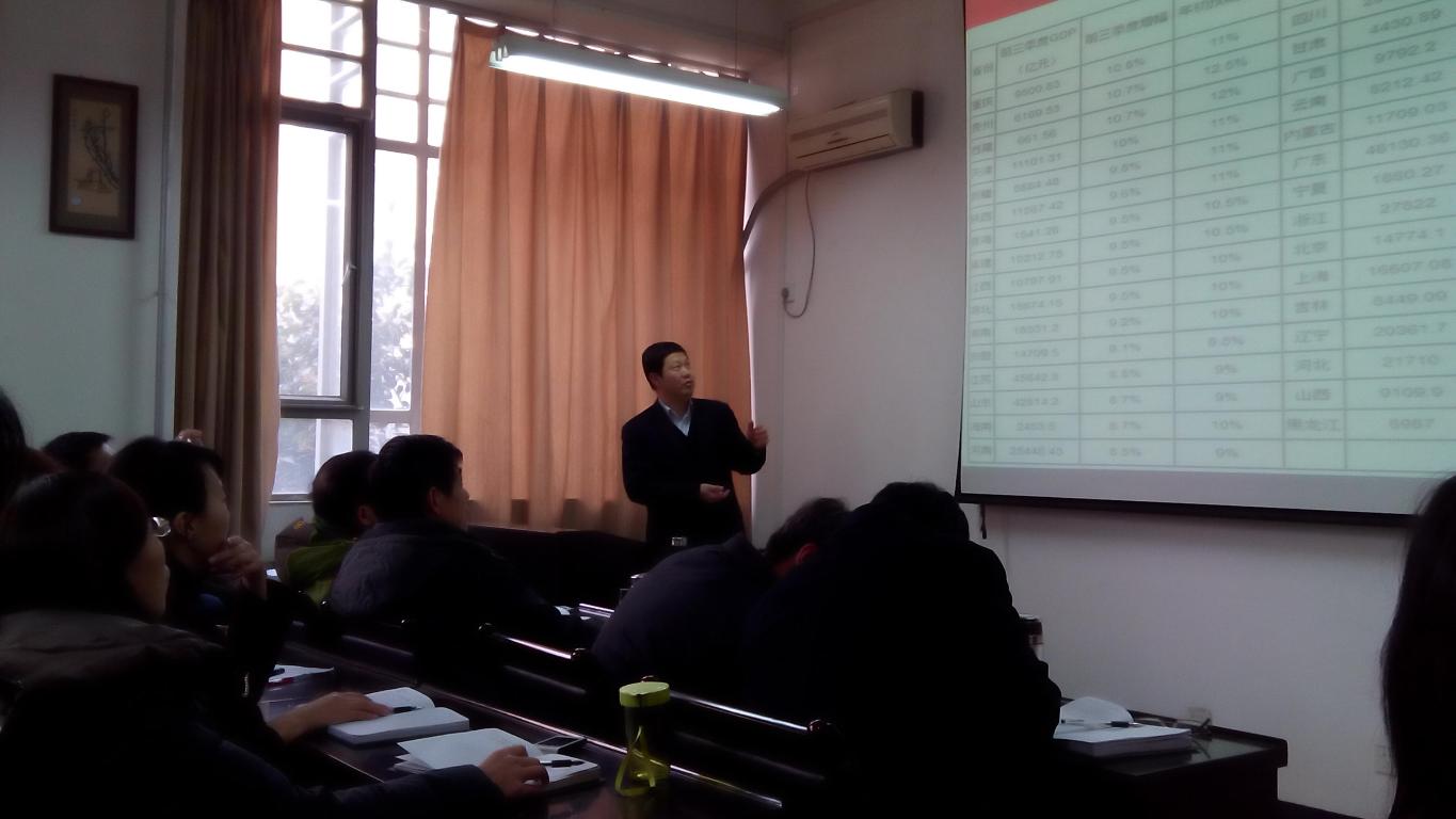 1月12日下午,应商学院邀请,中国社科院工业经济研究所所长、《中国工业经济》和《经济管理》主编、中国企业管理研究会副会长、博士生导师黄群慧教授在商学院二楼报告厅作了主题为“挑战与动力:新常态愿景下的经济发展”的学术报告。商学院骨干教师和研究生共100余人聆听了报告,报告由商学院院长任太增教授主持。 黄群慧教授的报告以“新常态”的解释开篇,循序渐进,从产能过剩挑战、产业结构升级挑战、新工业革命挑战、经济发展新共识、经济发展新动力六个部分内容进行论述。黄群慧教授指出,随着我国经济发展进入新常态,增长速度正从高速转向中高速,发展方式正从规模速度型粗放增长转向质量效率型集约增长,结构调整正从增量扩能为主转向存量与增量并存的深度调整,发展动力正从传统增长点转向新增长点。黄群慧教授通过我国“PPI、CPI、PMI等相关经济指数进行分析,清晰地阐述了我国目前国情下经济发展的两大新动力:工业化推动力和城市化进程拉动力。黄群慧教授还强调了我国经济应当由要素和投资驱动转变为创新驱动的重要性,强调市场调节的基础性作用,积极推行国有企业管理体制向“分层分类管理”转变,着力营造公平竞争市场环境。 整场报告会,黄群慧教授以渊博的知识、详实的数据、开阔的视野、深刻地剖析了新常态愿景下我国经济的发展现状并展望未来,观点鲜明,令人深受启发。 (商学院 宋树伟 陈熙)