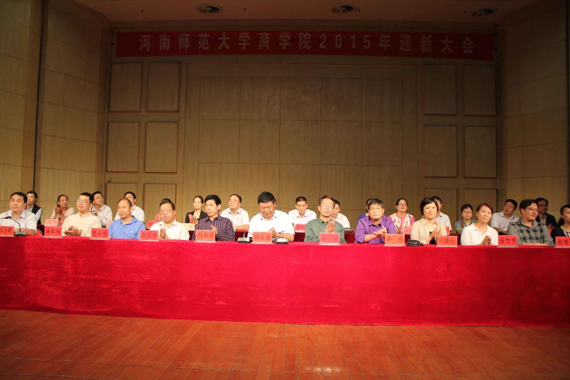 9月16日上午10时,商学院于帕瓦罗蒂音乐厅举行2015级迎新大会。商学院党委书记朱建,院长任太增,党委副书记李杰,教学院长刘新同,科研院长乔俊峰,行政院长纪晓红等学院领导、教授代表、各系和教研室主任、科级干部以及2015级全体新生参加了此次会议。会议由学院团委书记王令耀老师主持。