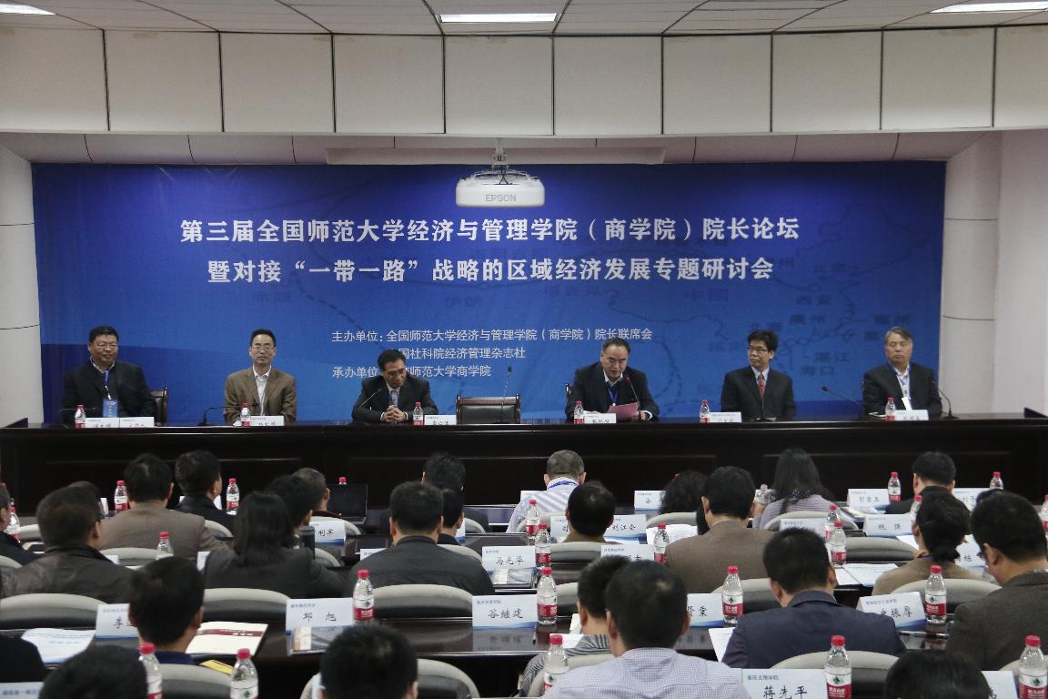 10月24日至25日,第三届全国师范大学经济与管理学院(商学院)院长论坛暨对接“一带一路”倡议的区域经济发展专题研讨会在我校举办。会议由全国师范大学经济与管理学院(商学院)院长联席会、《经济管理》杂志社主办,我校商学院承办。来自中国社会科学院、北京师范大学、华东师范大学、华南师范大学、华中师范大学、东北师范大学、湖南师范大学、上海师范大学、河南大学、《经济管理》杂志社等30余所教育部直属师范大学、省属师范大学的经济与管理学院(商学院)院长、专家教授共80余人参加了本次研讨会。