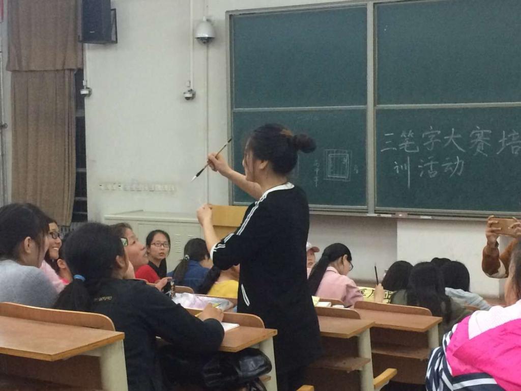 为更好传承和发展书法艺术,提升大学生综合素质。4月18日晚21时,商学院团委学生会宣传部于东教B楼102教室举行了三笔字大赛培训活动。两位美术学院2013级学生受邀担任此次培训老师。我院200余人积极参与了本次活动。