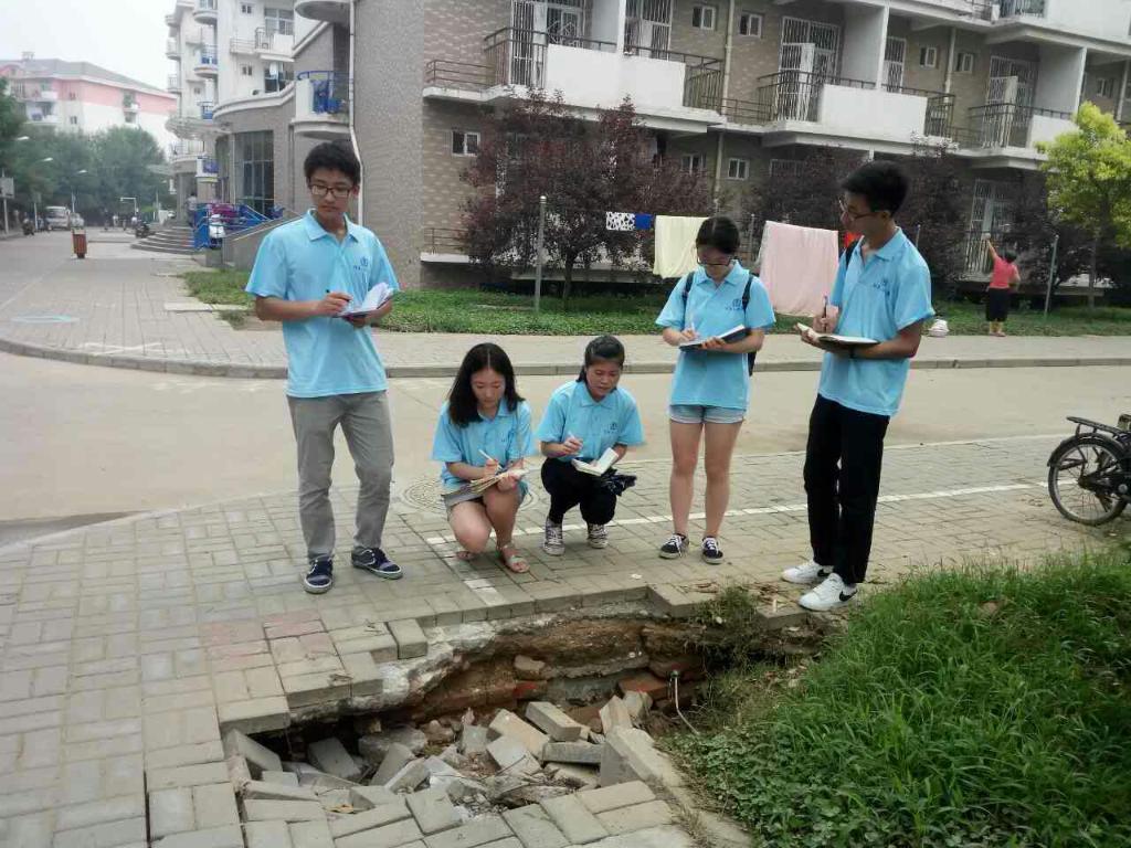 内涝过后,我校保卫处及时进行了排水工作,取得了不错的成果,但排水工作仍存在一些小问题有待解决。早上八点,在与保卫处沟通协调之后,青年创客企业行实践团队分为两个小组,分别对东西校区安全隐患问题进行排查。通过校内同学采访和地毯式检查,团队成员发现主要存在道路塌陷、井盖缺失、水管老化、线路老化、宿舍漏水、流浪宠物等安全隐患问题,需要校方及时处理。此外,东寓一号楼北20米处电线裸露、西区宿舍线路老化问题也严重威胁了同学们的人身安全。同时,在暴雨的突袭下,河师大新合作地下超市遭受严重损失,经过与负责人的沟通,至少十天可以恢复正常营业。安全排查之后,实践小组集合,交流排查成果,并把隐患的准确地址和情况制作电子表格。最后,我院实践团队与我校保卫处进行交流,共同对我校安全隐患问题制定了一套解决方案,保卫处表示将会对隐患问题进行及时处理,确保新学期的校内安全。