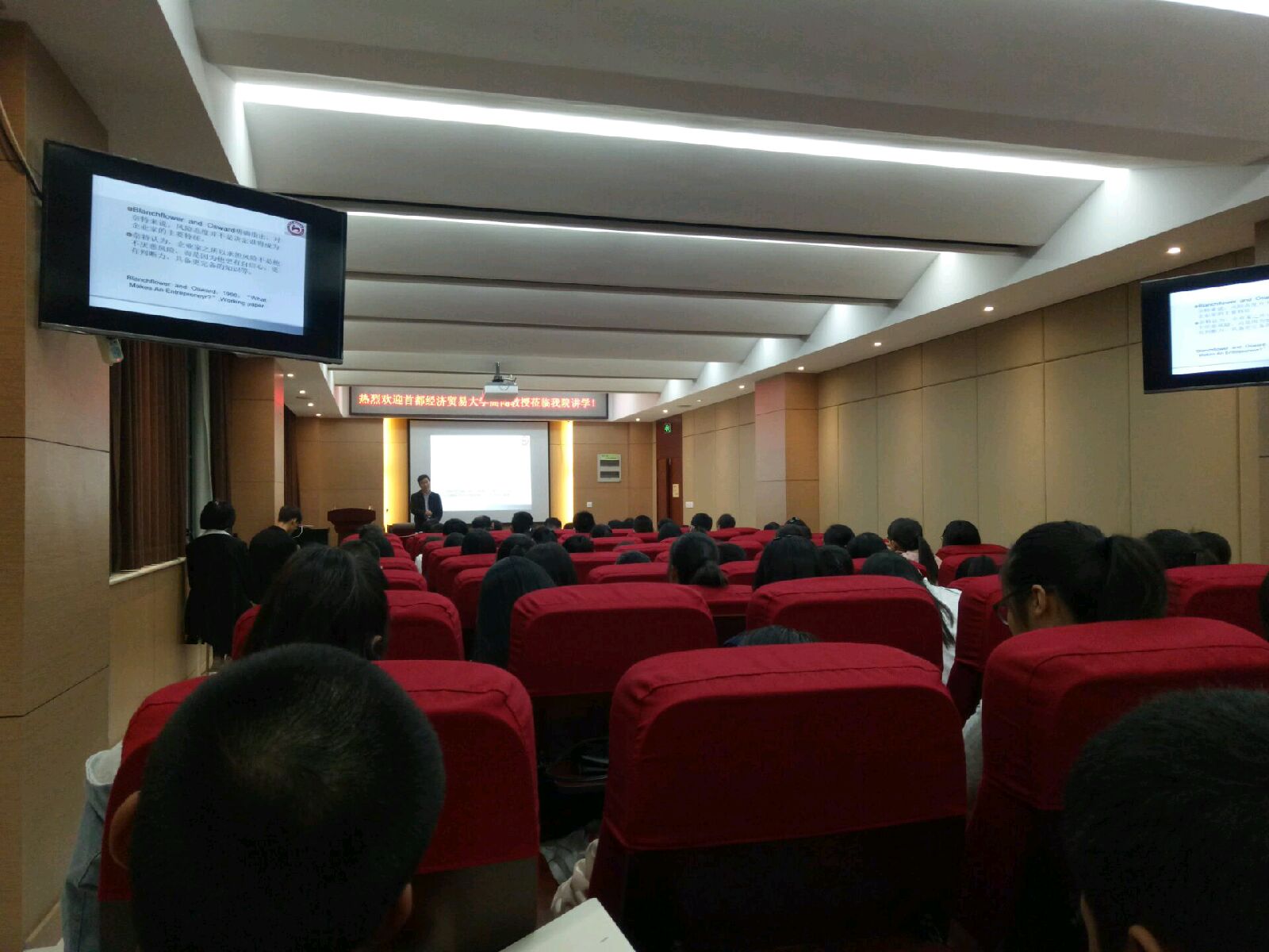 10月19日下午3点,应商学院邀请,首都经贸大学高闯教授莅临我院,在商学院119报告厅作了题为“谁更能成为企业家-成为企业家的先决条件”的学术报告。我院骨干教师、本科生、研究生100余人认真聆听了报告。此次报告由商学院院长任太增主持。