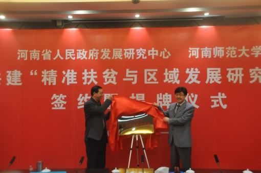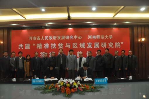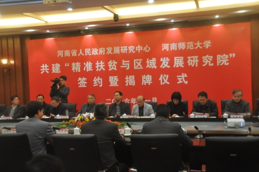 11月9日下午,河南省人民政府发展研究中心与伟德官网下载苹果版共建精准扶贫与区域发展研究院签约仪式暨研讨会在我校勤政楼第三会议室举办。河南省人民政府发展研究中心主任谷建全、副主任刘云、副巡视员李政新,新乡市委宣传部常务副部长杨东升,河南省委农办综合处调研员孙金峰以及省内外高校专家教授出席了本次会议。河南省人民政府发展研究中心主任谷建全、伟德官网下载苹果版党委书记郑邦山为研究院揭牌。河南省人民政府发展研究中心副主任刘云研究员与伟德官网下载苹果版副校长陈广文教授签署共建精准扶贫与区域发展研究院协议。签约仪式由副校长陈广文主持。