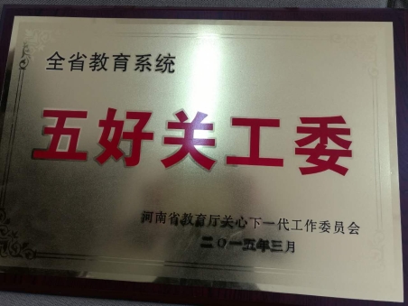 我院先后两次荣获新乡市尊老敬老工作先进单位,于2015荣获河南省教育系统“五好关工委”荣誉称号、2016年荣获新乡市“志愿助老服务先进集体”荣誉称号。