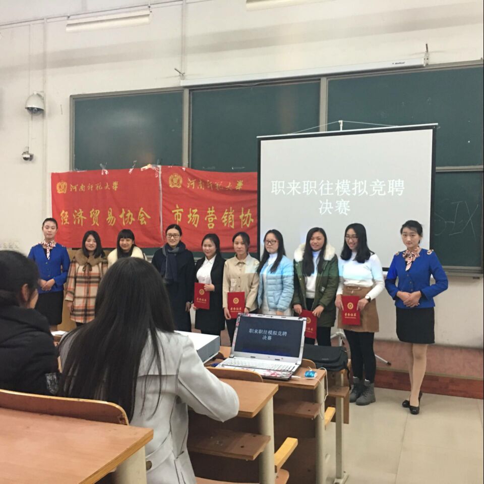 11月27日下午,由商学院社联主办、市场营销协会承办的职来职往模拟竞聘大赛,在东教B楼203举行。我院2014级辅导员张安琪出席本次大赛并担任评委,院社联办公室主任、院社联纪监部部长、市场营销协会会长担任评委,来自我校各学院的八名同学参与此次比赛,各年级100名同学观看了本次比赛。