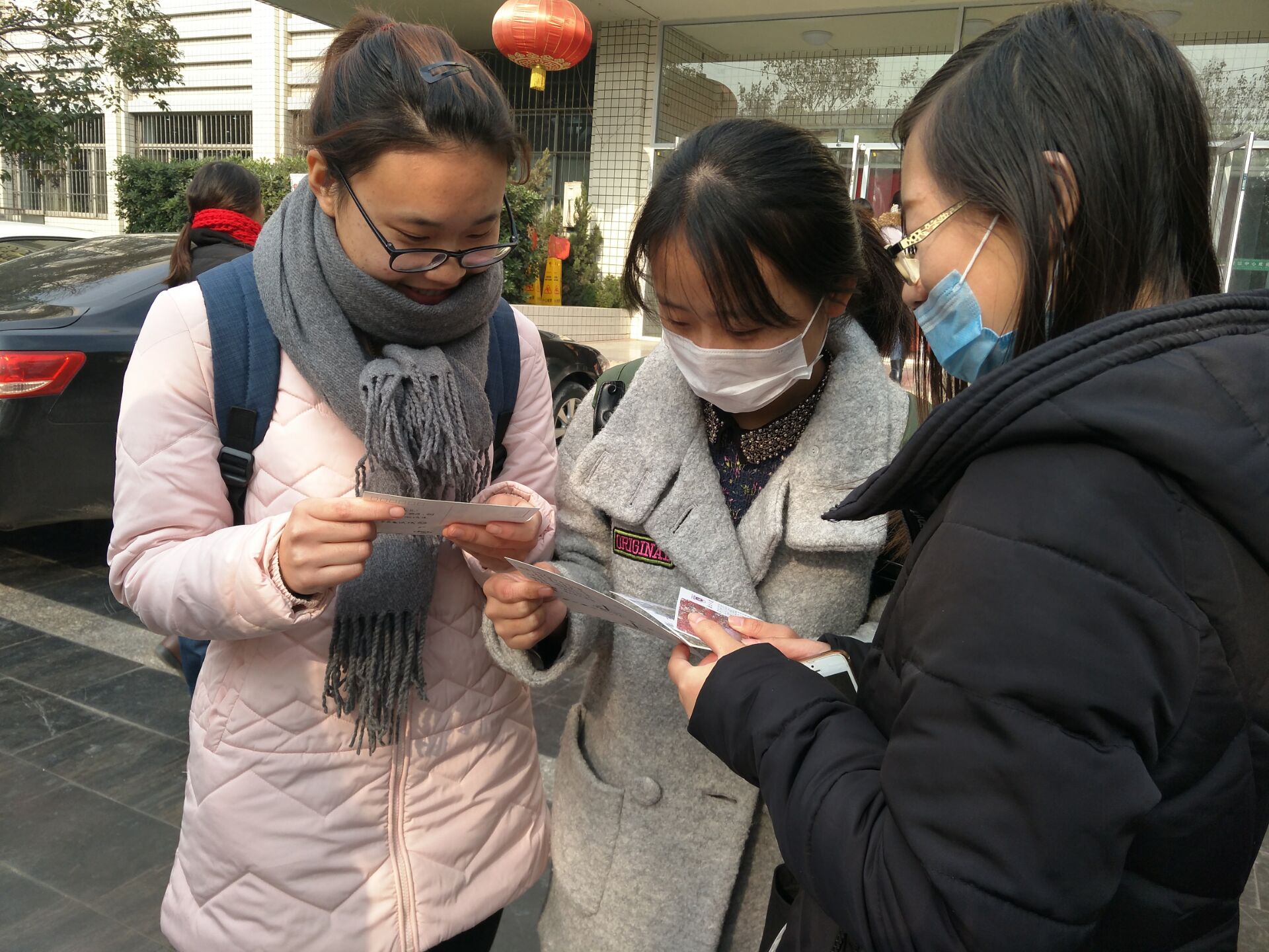 活动伊始,各小组都对各自所负责的活动做了精心准备,并对志愿服务活动中可能出现的问题了进行交流讨论。随后,各小组成员展开了具体实施工作。一小组成员在东区餐厅至卫河这一人流量较大的路段分发卡片,向同学们阐明了本次实践活动的意义,倡议同学们在期末考试中能够做到诚信。二小组成员则在东区对小广告展开了铲除工作。言简意赅说明小广告极大影响东区环境美观度,呼吁同学们一起营造一个美丽的校园环境。三小组成员于东区寝室附近进行“自行车占道”情况的实地考察。对占道的自行车进行了重新摆放。小组成员们纷纷表示,保护校园环境是我们每个人的责任,我们义不容辞。