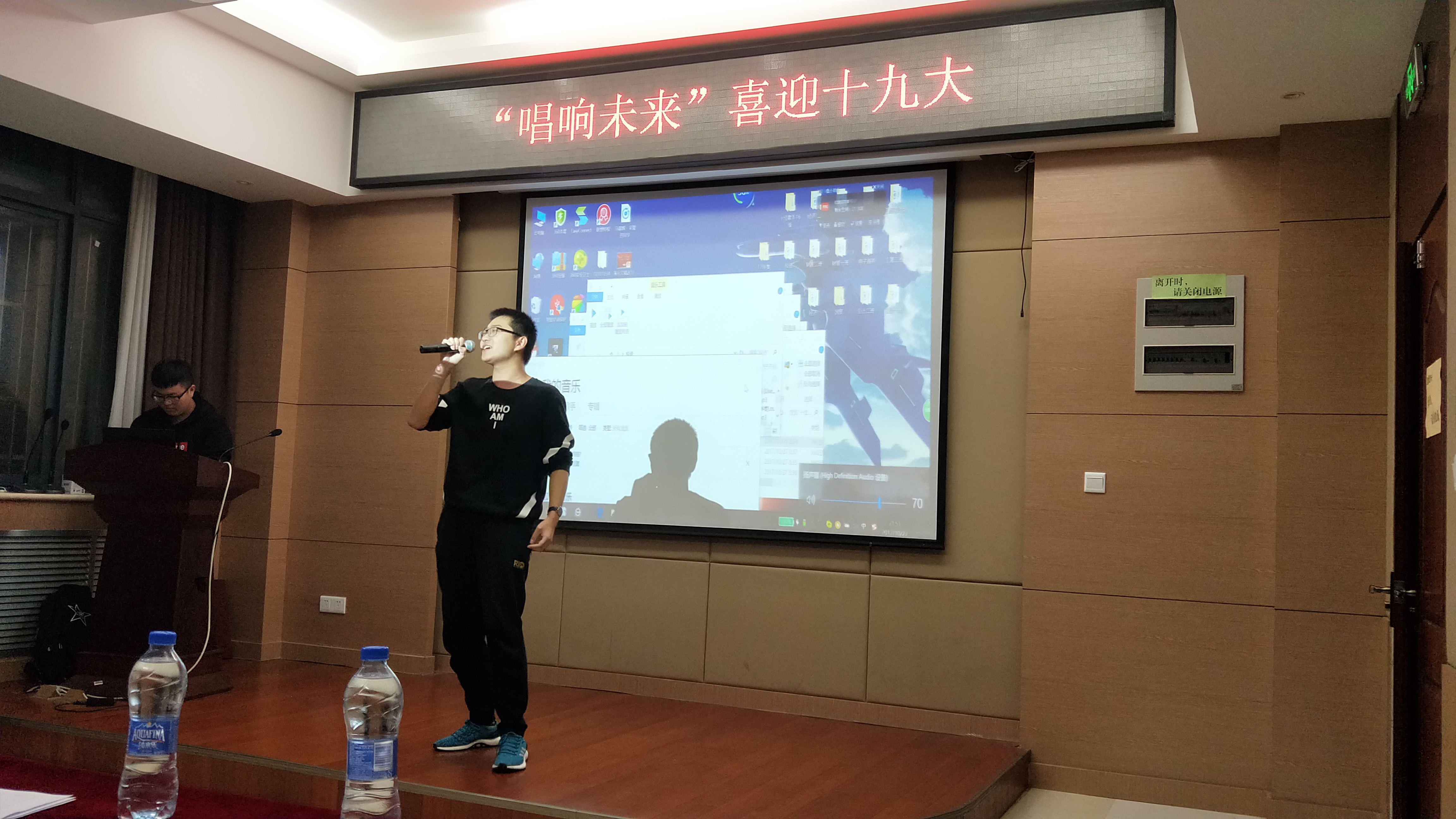 在同学们的满心期待下,主持人宣布比赛开始。选手们在闪耀的灯光下如痴如醉地唱着,唱响未来,唱出对十九大精神的崇敬和感想;同学们激情滂湃,感受到了十九大精神的强烈号召,比赛高潮迭起。其中刘庆同学以一首《歌唱祖国》唱出了当代青年对祖国大好山河的热爱之情。谢玉莹同学则是以一首《团结就是力量》表达了新一代青年应该具备积极向上、团结互助的品质。选手们将歌词化为自己喜迎党的十九大的行动,表现出其愿意为祖国的富强贡献出自己的一份力量的决心。最后在我院团委学生会文艺部副部刘庆的《悟空》的歌声中,比赛落下帷幕。
