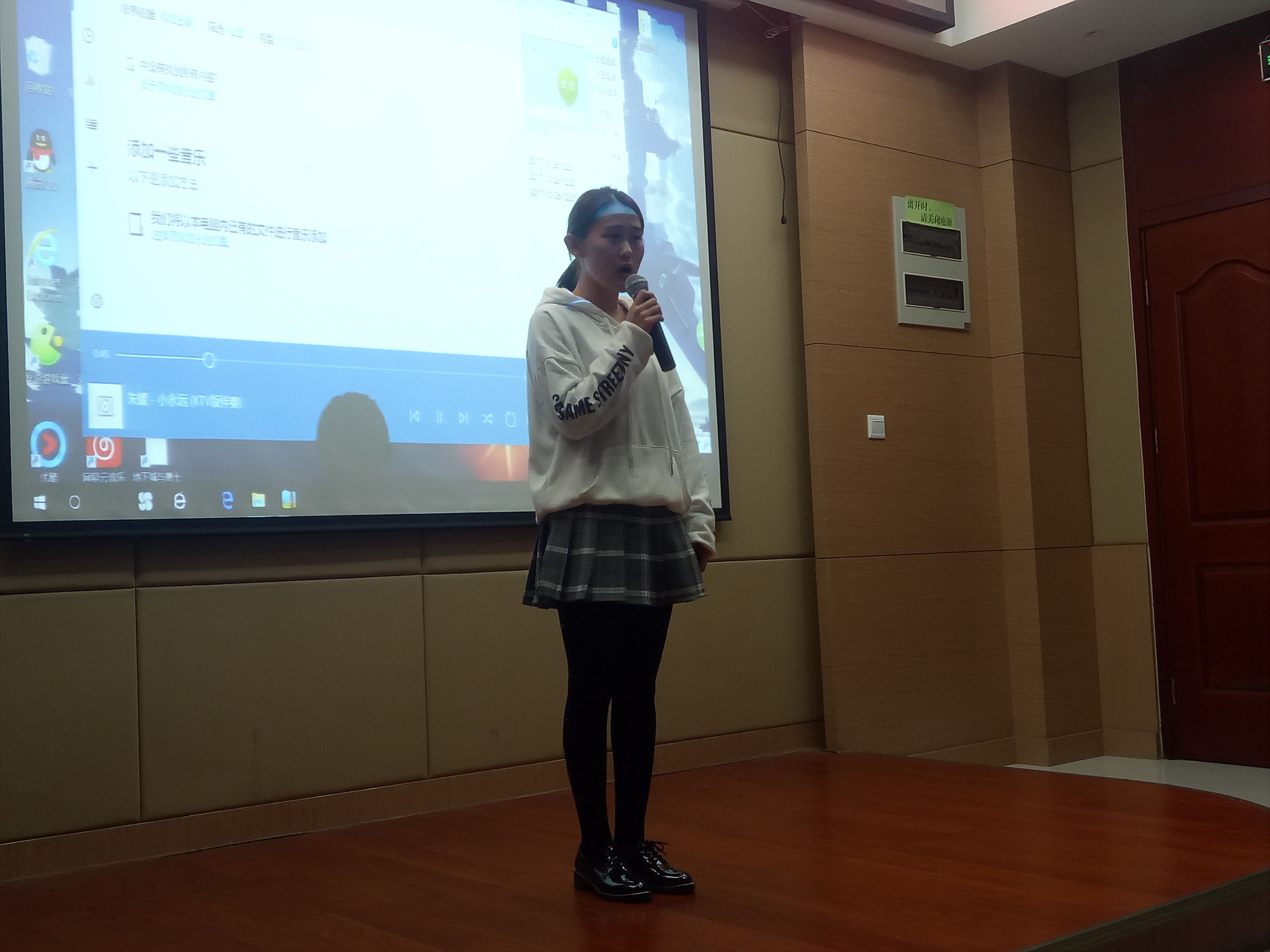 10月27日晚7时,由商学院文艺部主办的“青春喜迎十九大,歌唱祖国新时代”歌手大赛在商院楼119报告厅成功举行。本次比赛由音乐舞蹈学院学生武俊宇、贾佳、党婧赫及十佳歌手大赛总冠军姚亮出任专业评委;由pop音乐协会团支书万红红、优秀歌手王艺璇、商学院团委学生会部分成员组成大众评审团。2017级部分学生观看了此次比赛。