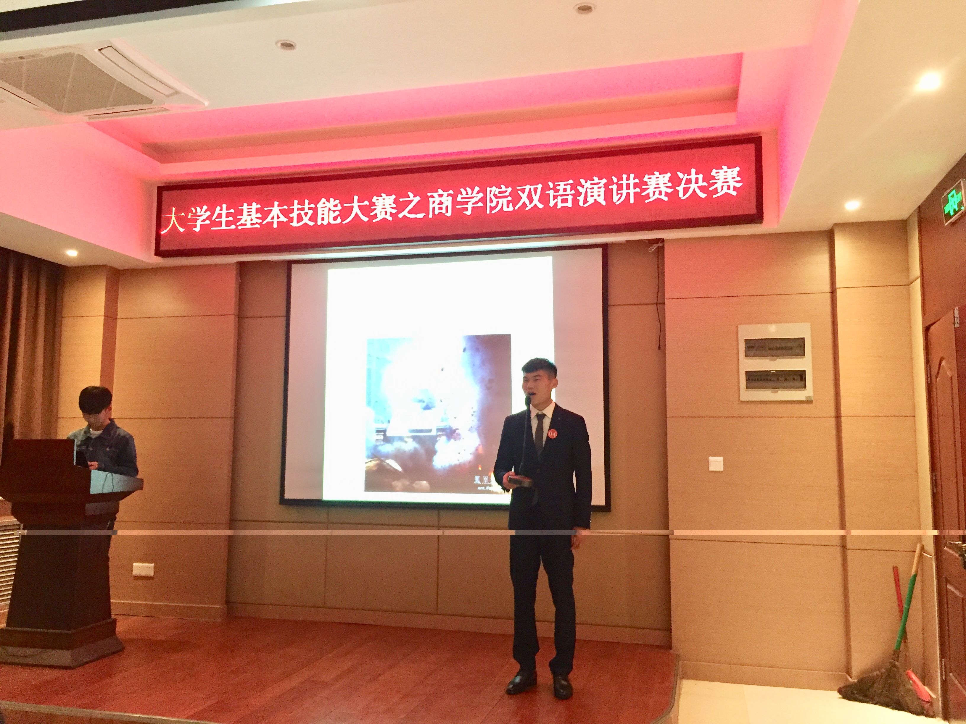 为响应我校党委学工部学生处的号召,积极备战第二十五届大学生基本技能大赛。4月9日晚,商学院于119报告厅隆重举行了大学生基本技能大赛之双语演讲院内选拔大赛。我院团委学生会主席团成员以及2016级、2017级部分同学共同观看了本次大赛。